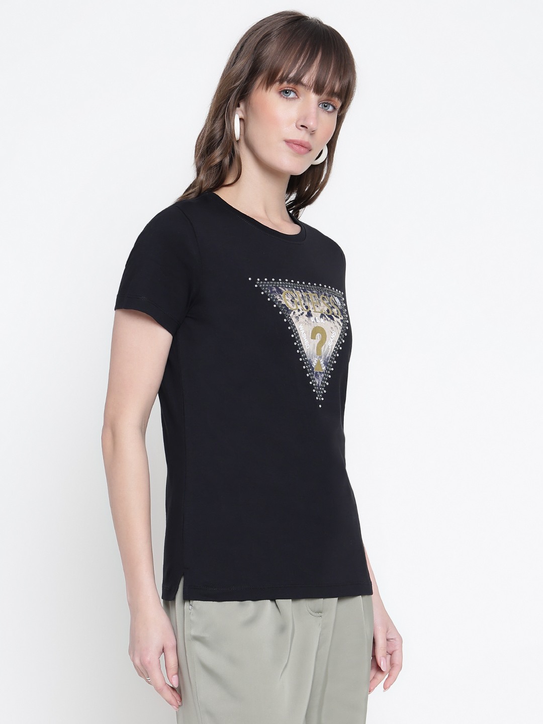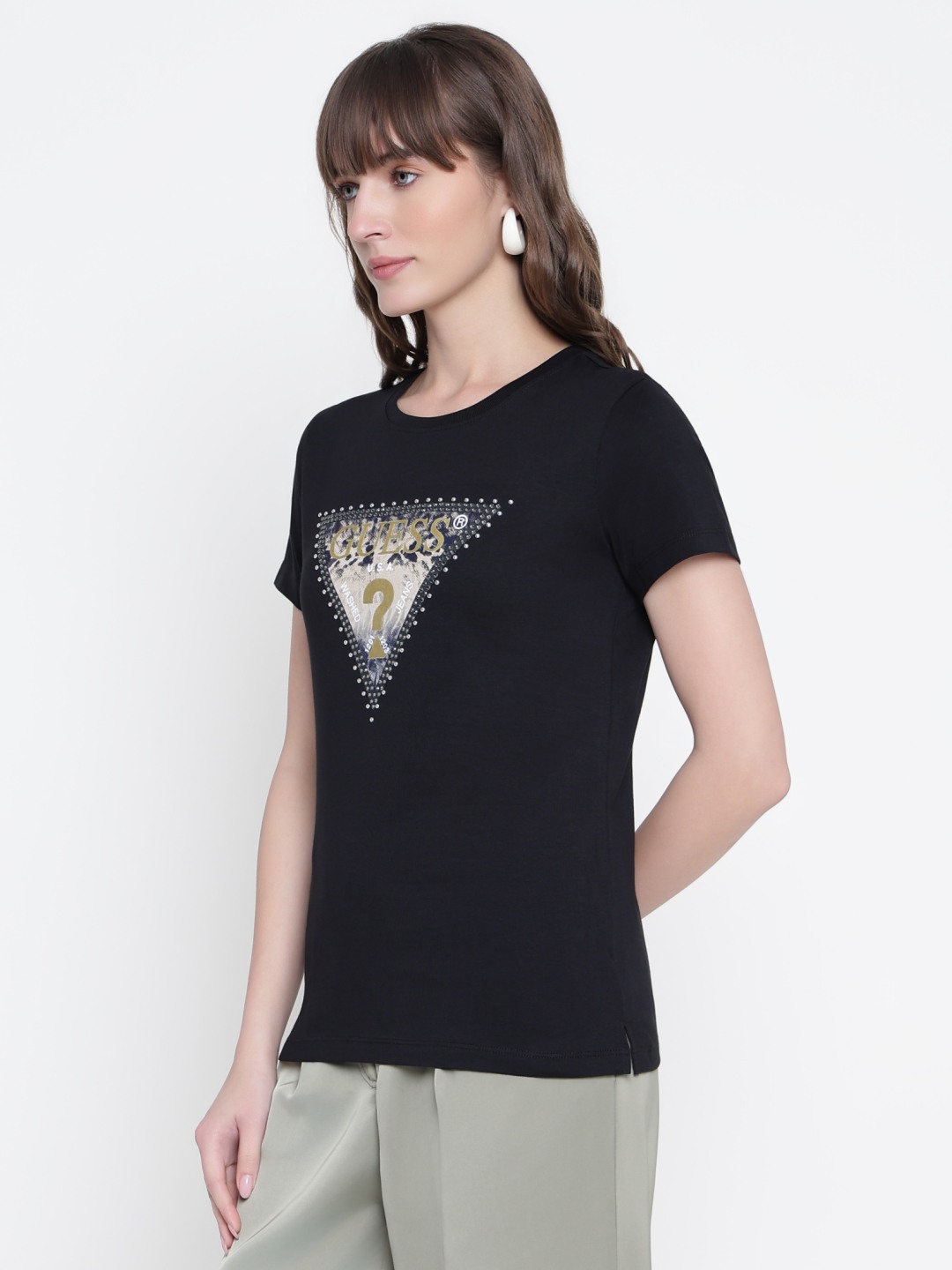 Elevate your casual wardrobe with our chic graphic print T-shirt, designed for the modern woman who values both comfort and style. This regular fit tee features a vibrant and eye-catching graphic print that adds a touch of personality to any outfit. Crafted from 100% premium cotton, it ensures breathability and softness, making it perfect for all-day wear. The short sleeves and classic round neck design offer a timeless silhouette that flatters every body type. With its slip-on closure, this T-shirt provides effortless dressing, ideal for those on-the-go moments. Whether you're pairing it with jeans for a laid-back look or dressing it up with a skirt for a more polished ensemble, this versatile piece is a must-have addition to your closet. Perfect for casual outings, weekend getaways, or simply lounging at home, this graphic print T-shirt combines style and comfort seamlessly, making it a staple in any fashion-forward wardrobe.