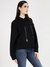 Women Black Solid Hooded Full Sleeves Pullover Style Sweatshirt