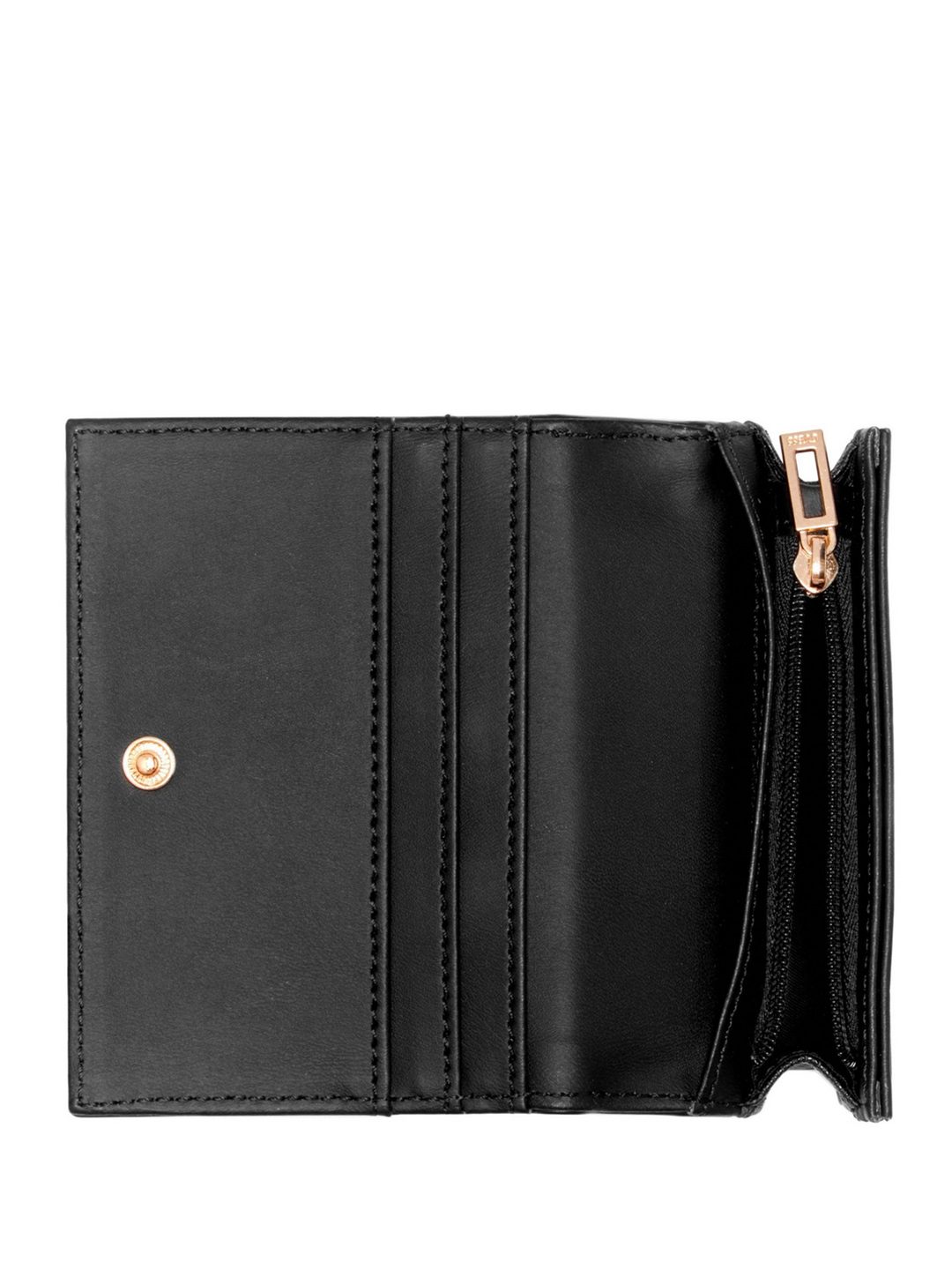 The pepperidge mini foldover bi fold wallet in black offers a sleek and practical accessory for women. Crafted from durable polyvinyl chloride fabric, it features a solid pattern that adds a touch of elegance. The compact design makes it easy to carry in your hand or slip into a bag. The foldover style provides secure storage for your cash, cards, and coins. Its minimalist look complements any outfit, making it suitable for everyday use or special occasions. Lightweight and functional, this wallet combines style and convenience effortlessly. Enjoy organizing your essentials with a chic accessory that is both stylish and reliable.