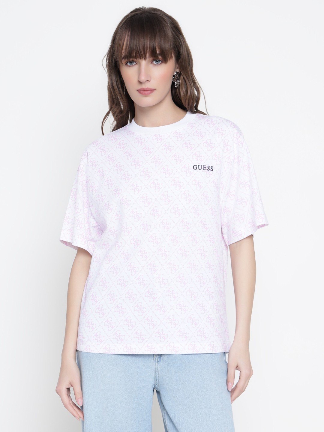 Elevate your casual wardrobe with our chic geometric print t-shirt, designed for the modern woman who values both style and comfort. This regular fit tee features a captivating geometric pattern that adds a touch of contemporary flair to any outfit. Crafted from 100% premium cotton, it ensures breathability and softness, making it perfect for all-day wear. The short sleeves and classic round neck design offer a timeless silhouette that flatters every body type. With its slip-on closure, this t-shirt provides effortless dressing, ideal for those on-the-go moments. Whether you're pairing it with jeans for a laid-back look or dressing it up with a skirt for a more polished ensemble, this versatile piece is a must-have addition to your wardrobe. Embrace the perfect blend of comfort and style with our geometric print t-shirt, and make a bold fashion statement wherever you go.