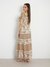 Women Brown Printed Square Neck Short Sleeves Dress