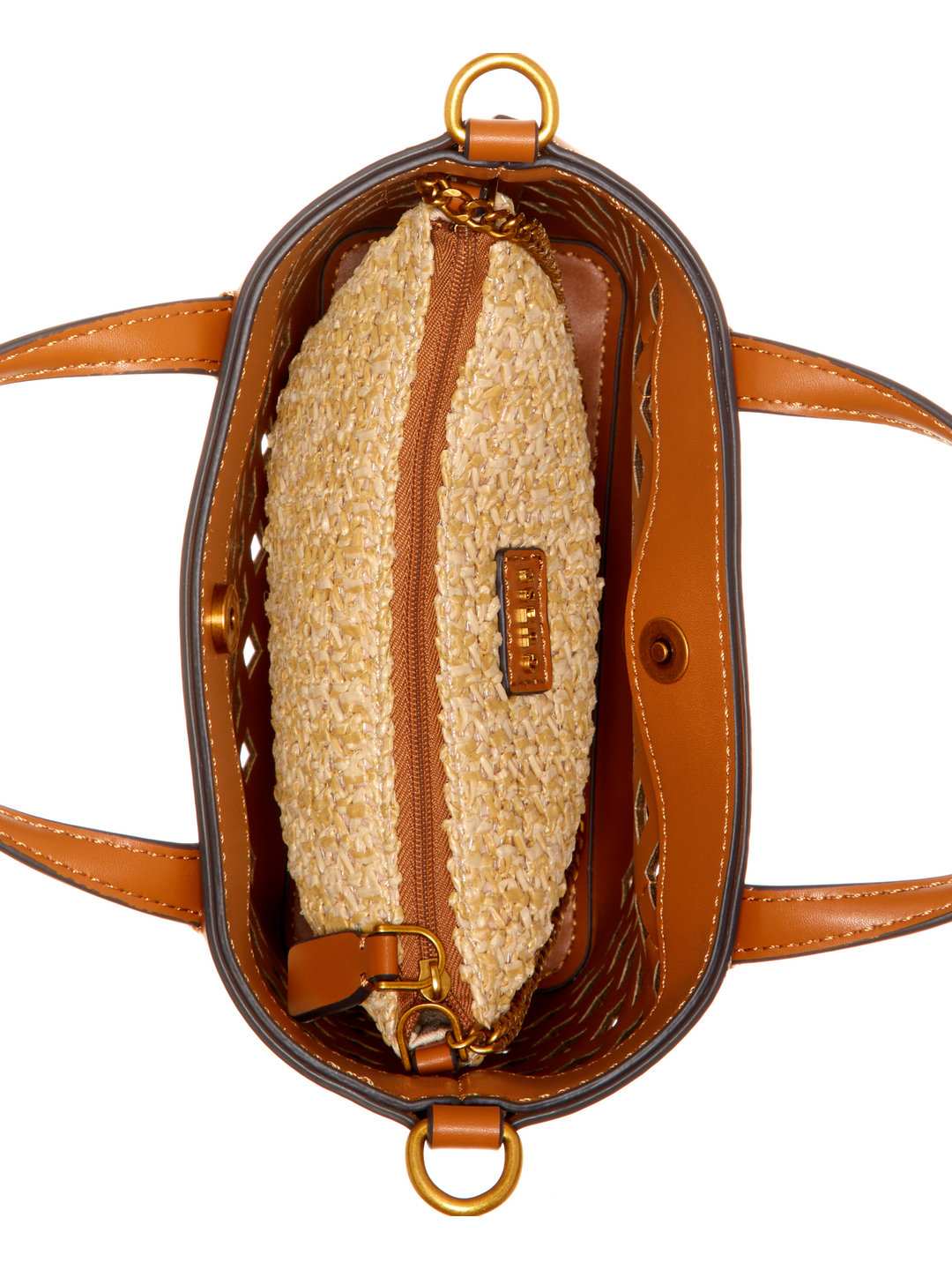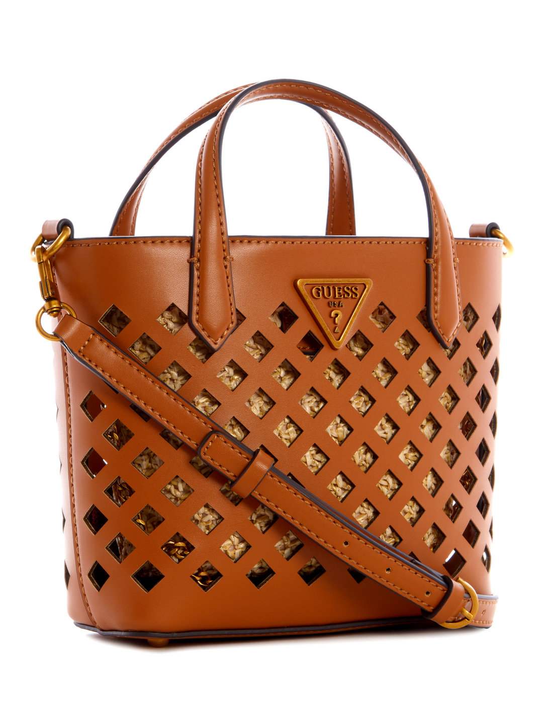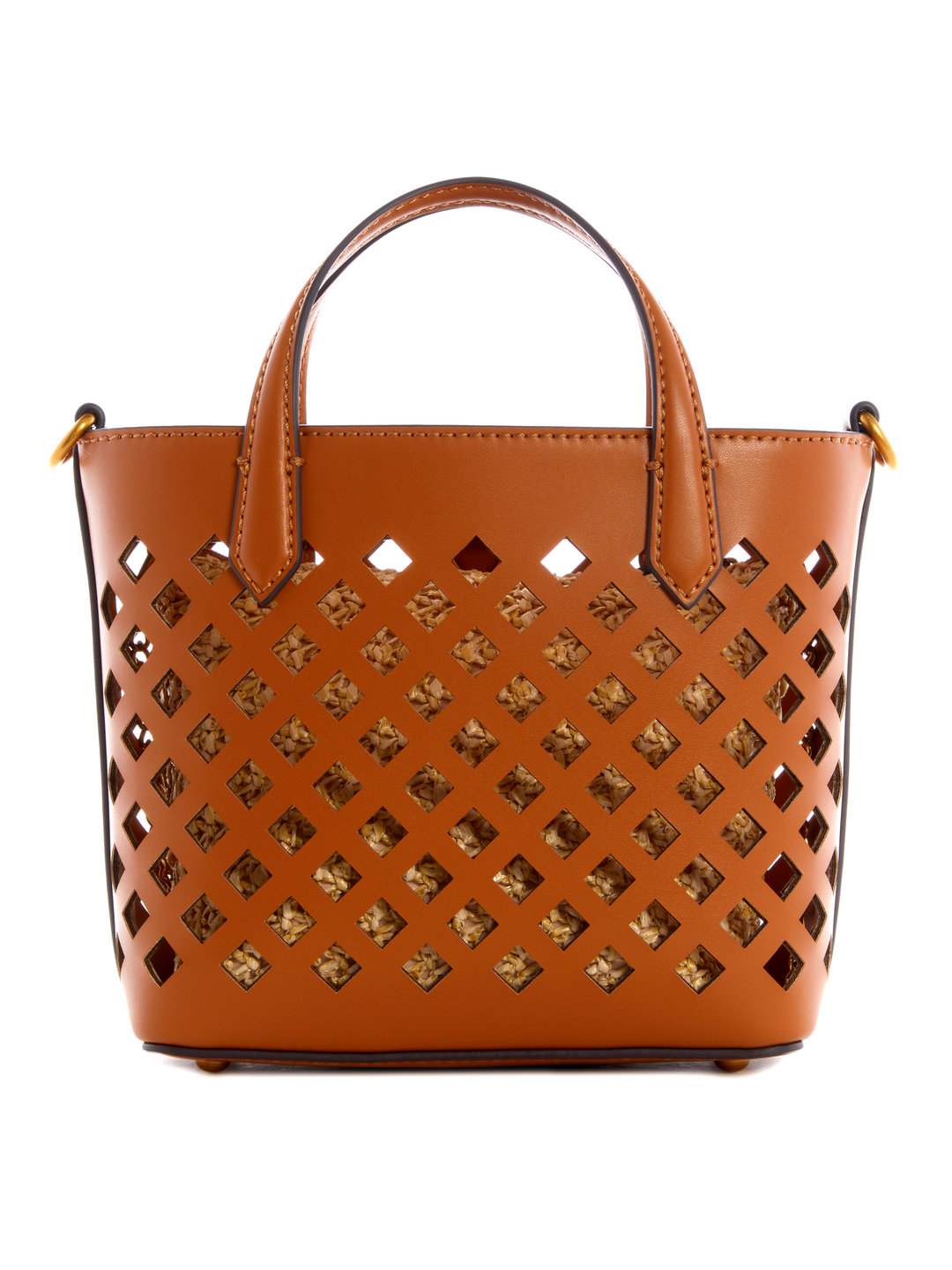 The aqua mini tote bag in cognac color is a stylish and versatile accessory perfect for women on the go crafted from durable polyurethane fabric it features an intricate cutwork pattern that adds a touch of elegance to its design the compact size makes it ideal for carrying essentials like your phone wallet and keys while maintaining a chic look the rich cognac hue complements various outfits making it suitable for both casual and formal occasions the lightweight construction ensures comfort throughout the day the aqua mini tote bag combines functionality with sophisticated style to elevate your everyday ensemble