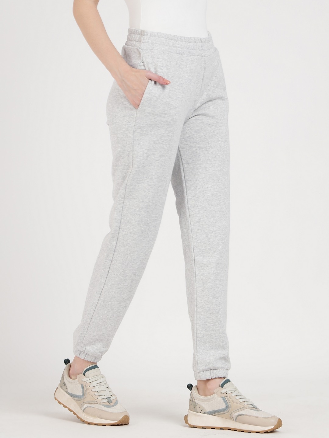 Women Grey Solid Mid-Rise Ankle Length Joggers Style Trackpant