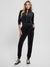 Women Jet Black Solid Couture Full Zip Poly Velvet Sweatshirt