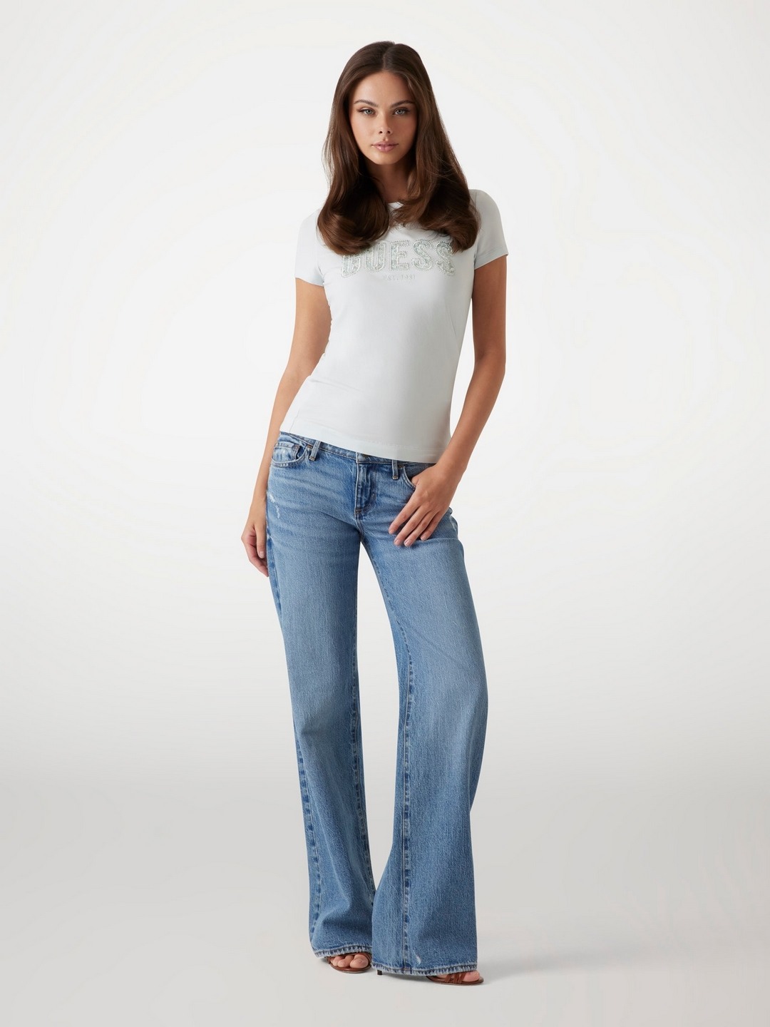Elevate your wardrobe with our chic slim-fit T-shirt, designed for the modern woman who values both style and comfort. This elegant piece features a subtle brand logo pattern that adds a touch of sophistication to any outfit. Crafted from a premium blend of 95% cotton and 5% elastane, this T-shirt offers a soft, breathable feel with just the right amount of stretch for a flattering silhouette. The short sleeves and classic round neck design make it a versatile staple, perfect for layering or wearing on its own. With a convenient slip-on closure, this T-shirt ensures ease of wear, making it an effortless choice for any occasion. Whether you're dressing up for a casual day out or lounging at home, this T-shirt promises to keep you looking stylish and feeling comfortable. Available in a range of sizes, it's a must-have addition to your fashion collection.