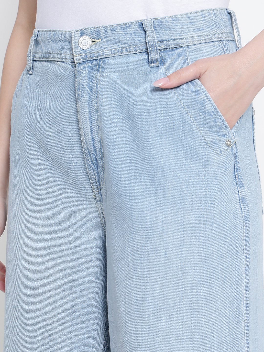 Discover the epitome of effortless style with our light blue loose-fit jeans for women. Crafted from premium fabric, these jeans offer a perfect blend of comfort and chic. The solid pattern exudes a timeless appeal, making them a versatile addition to any wardrobe. With a relaxed silhouette, they provide a flattering fit that complements all body types. Whether paired with a casual tee or a sophisticated blouse, these jeans promise to elevate your look with their understated elegance and modern flair.