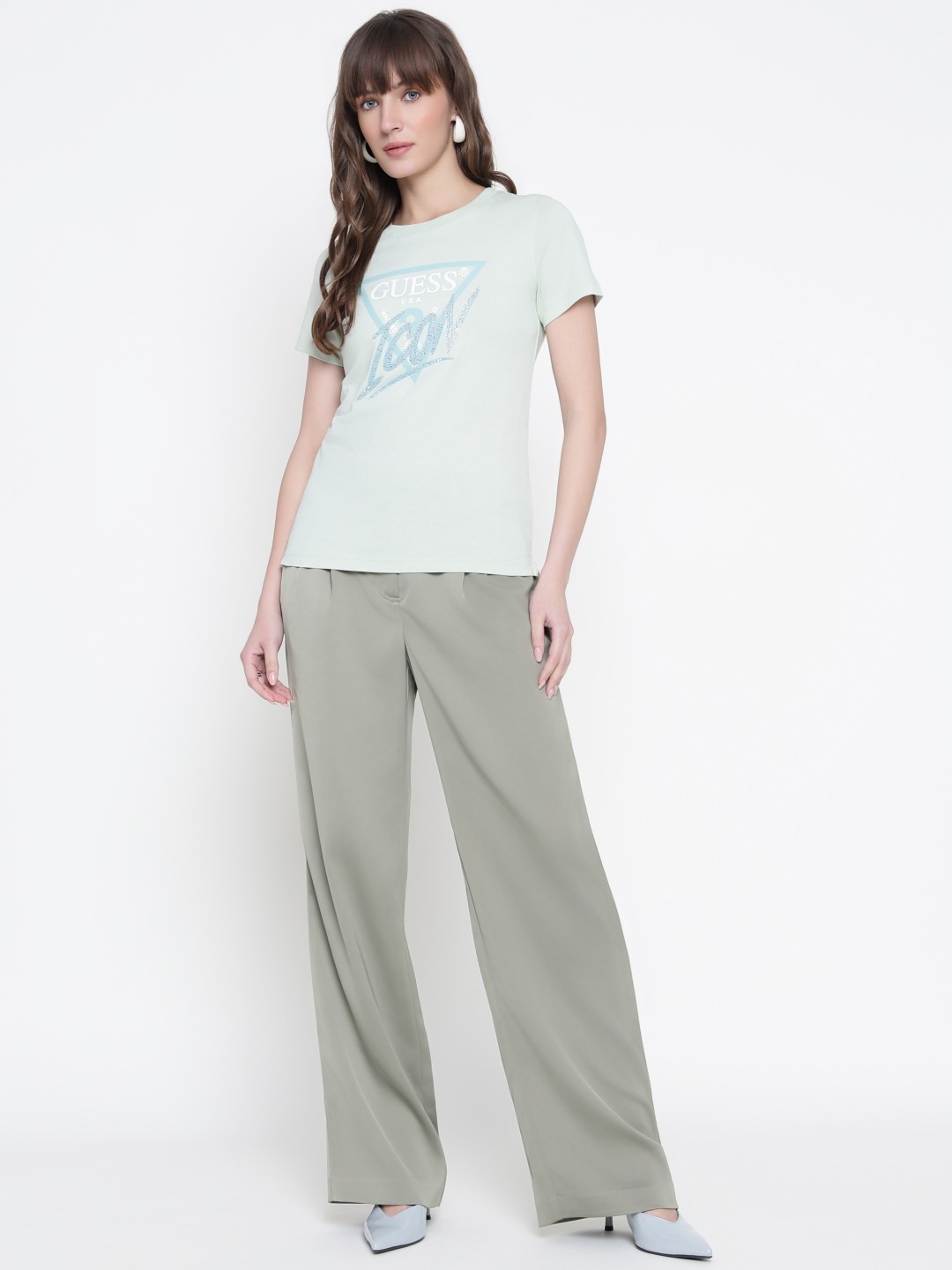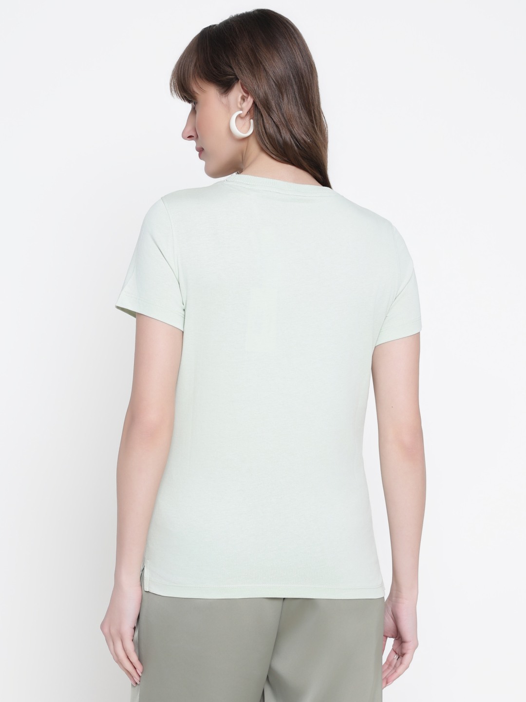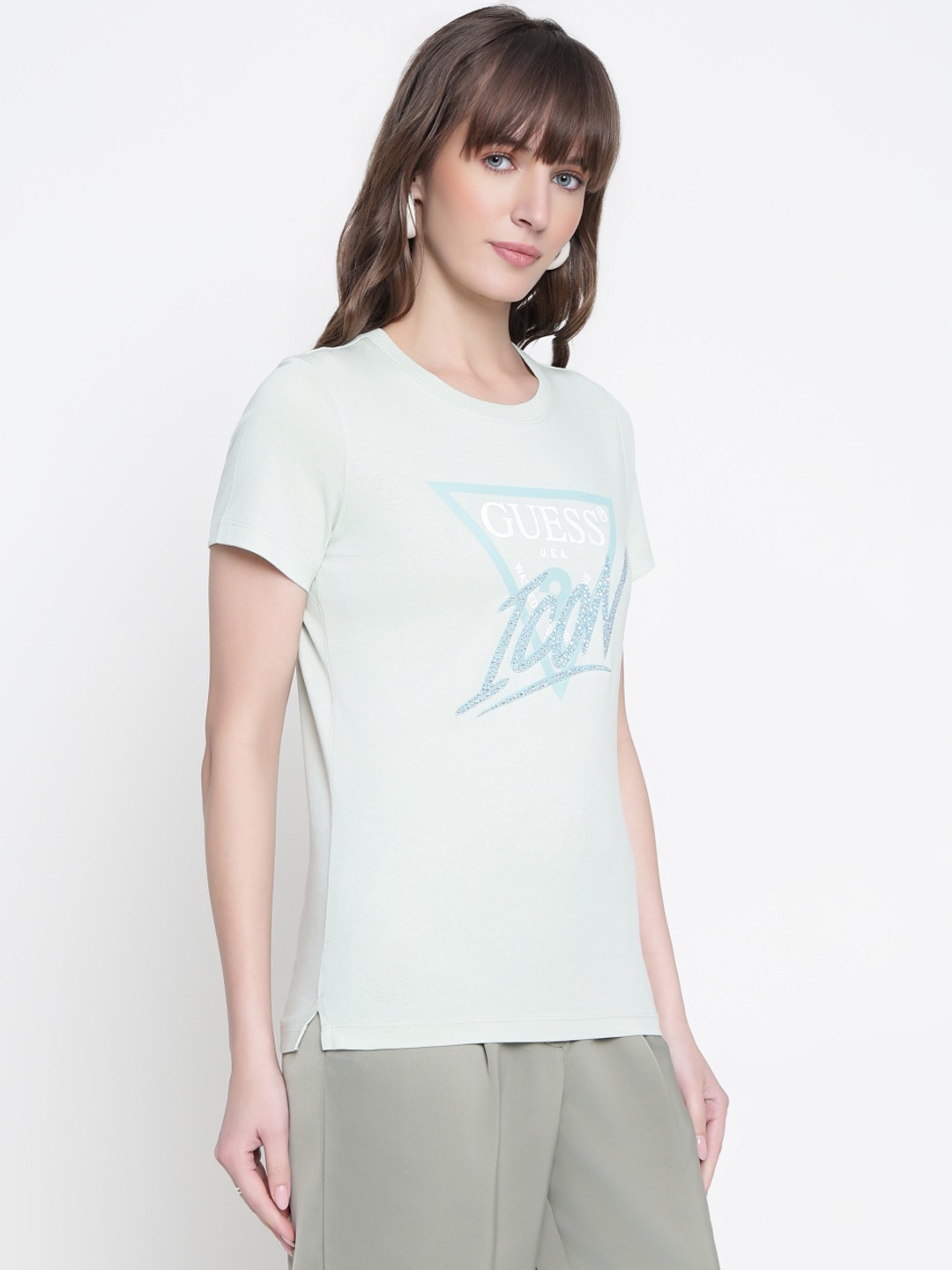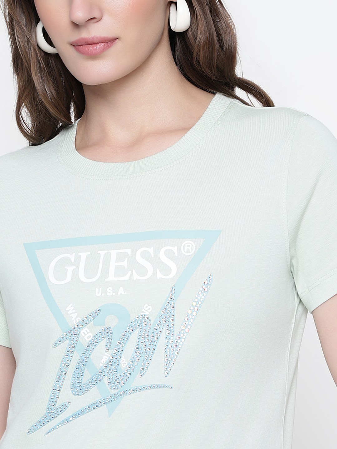 Elevate your wardrobe with our chic slim-fit T-shirt, designed for the modern woman who values both style and comfort. This exquisite piece features an embellished pattern that adds a touch of glamour to any outfit, making it perfect for both casual outings and special occasions. Crafted from 100% premium cotton, this T-shirt ensures breathability and softness against your skin, providing all-day comfort. The short sleeves and round neck design offer a classic silhouette, while the slip-on closure ensures ease of wear. Whether paired with jeans for a laid-back look or a skirt for a more polished ensemble, this versatile T-shirt is a must-have addition to your collection. Its flattering slim fit accentuates your figure, making it a go-to choice for any fashion-forward woman. Embrace effortless elegance and make a statement with this stunning embellished T-shirt, designed to keep you looking and feeling fabulous.