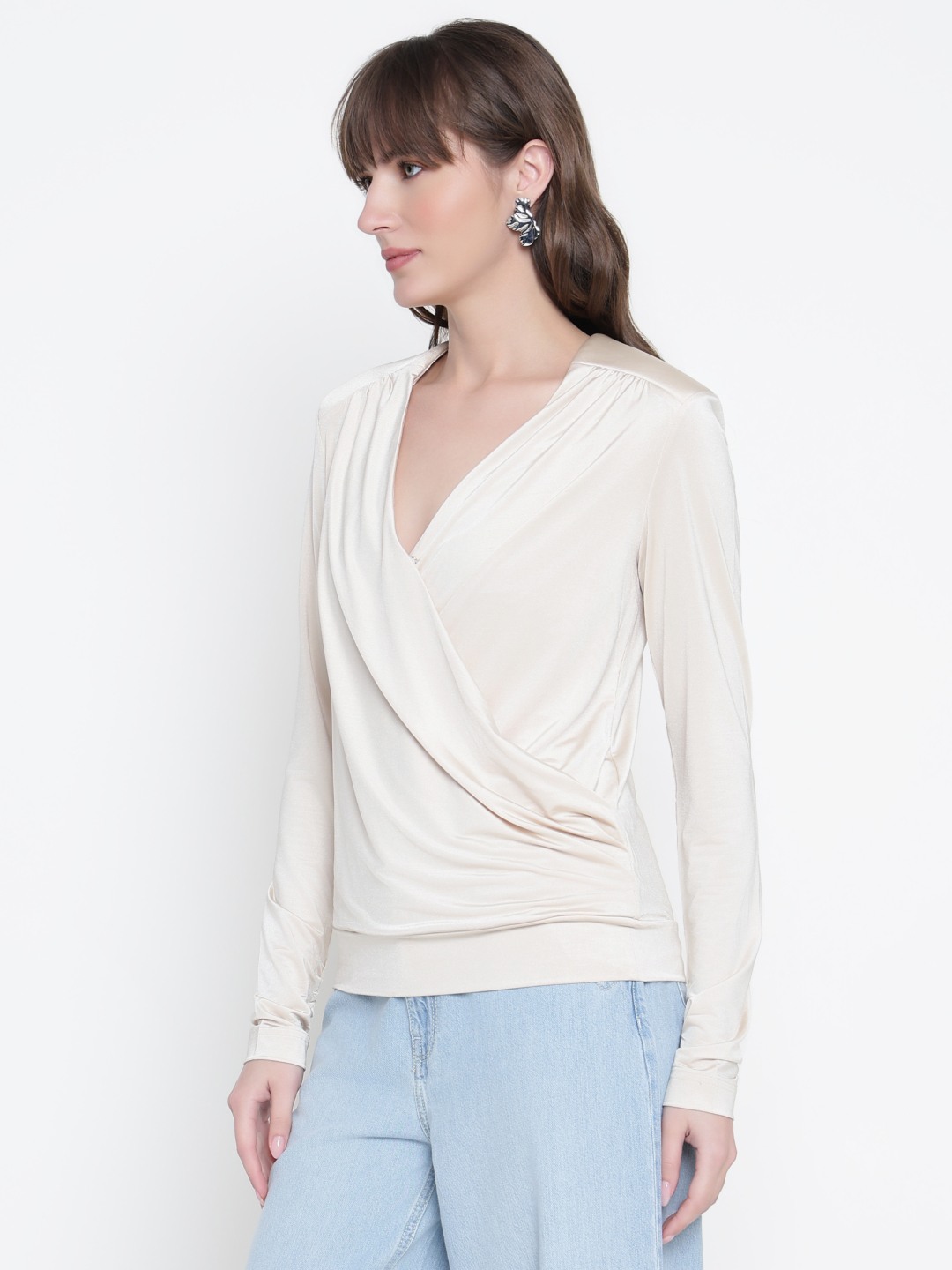 Elevate your wardrobe with our chic regular fit top, designed for the modern woman who values both style and comfort. Crafted from a premium blend of 88% polyester and 12% elastane, this top offers a soft, stretchy feel that moves with you, ensuring all-day comfort. The solid pattern provides a versatile canvas, perfect for pairing with your favorite accessories or layering under jackets and cardigans. Featuring a sophisticated V-neckline, this top adds a touch of elegance to any outfit, making it suitable for both casual and formal occasions. The long sleeves offer additional coverage, ideal for transitioning between seasons. With a convenient slip-on closure, getting dressed is a breeze, allowing you to focus on your day. Whether you're heading to the office, a dinner date, or a weekend outing, this top is a must-have staple that effortlessly combines style and functionality.