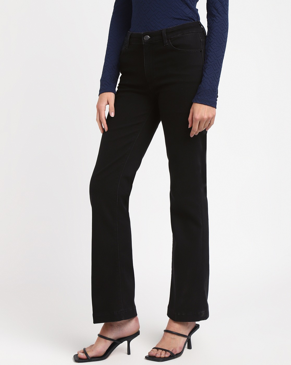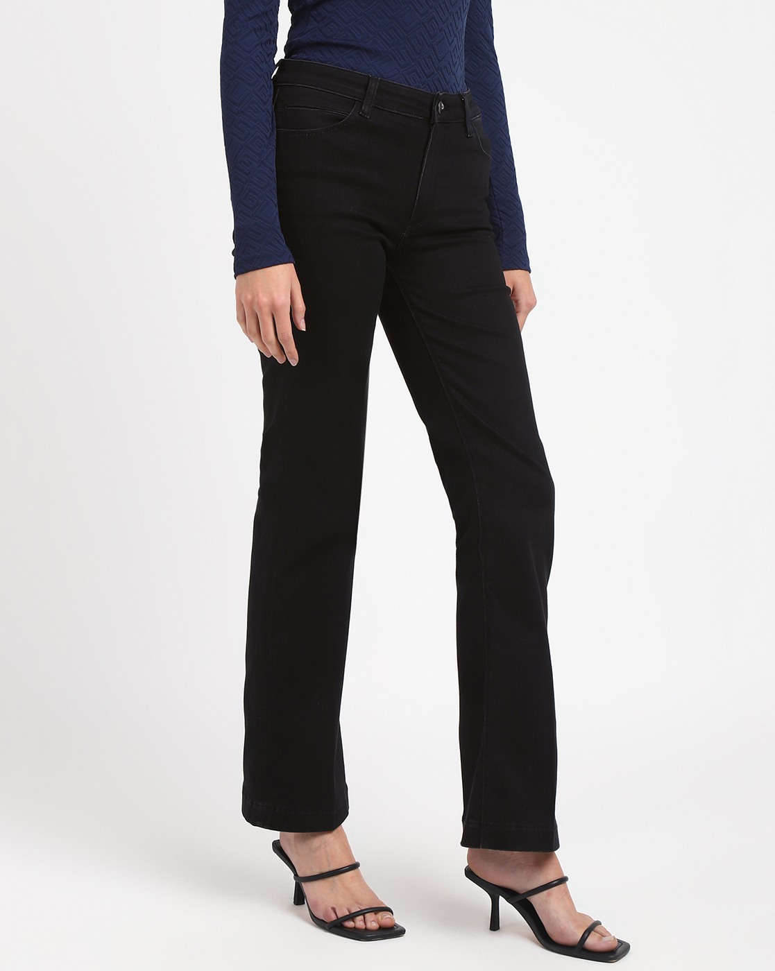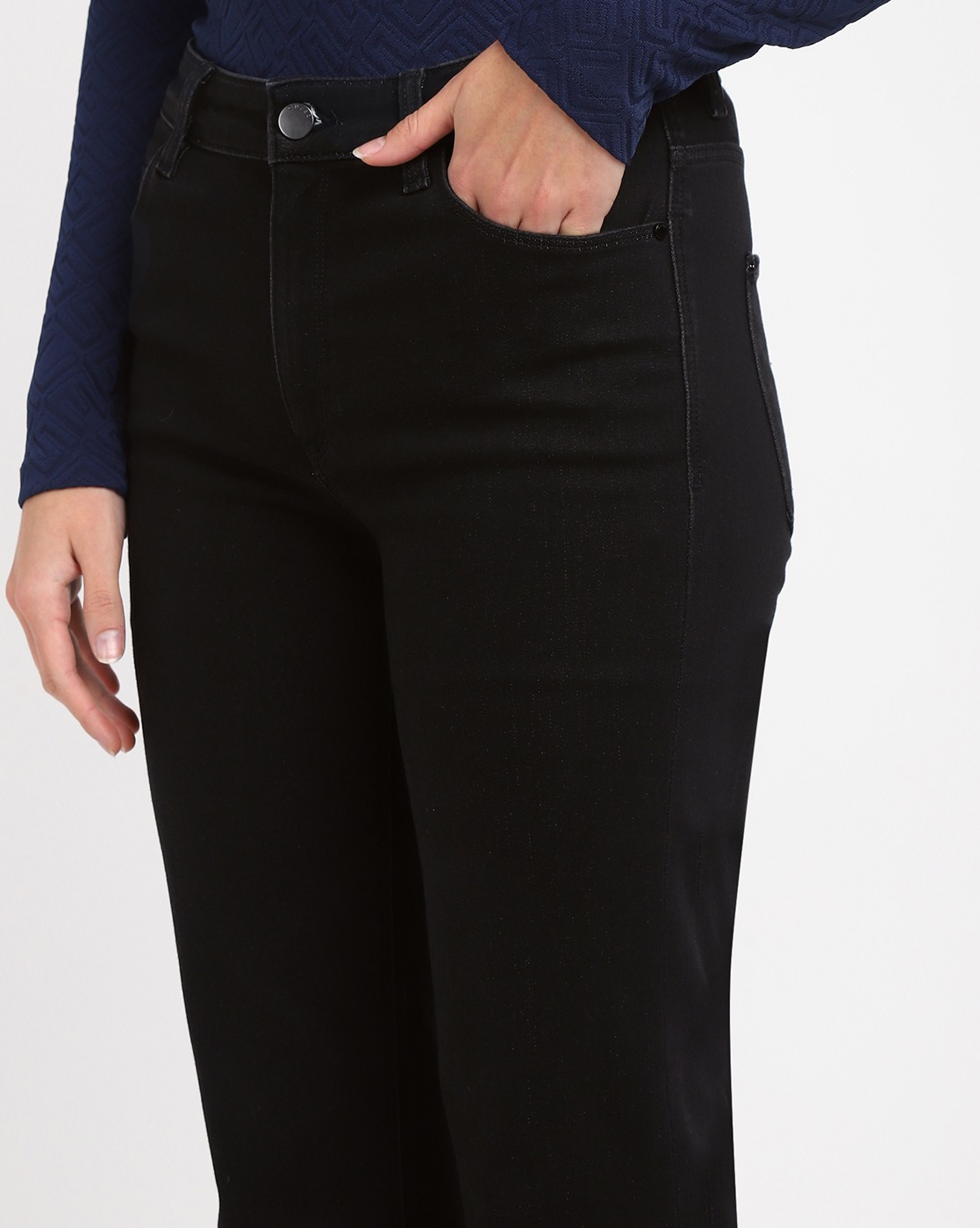 • Women's Black Cotton Solid Slim Fit Jeans