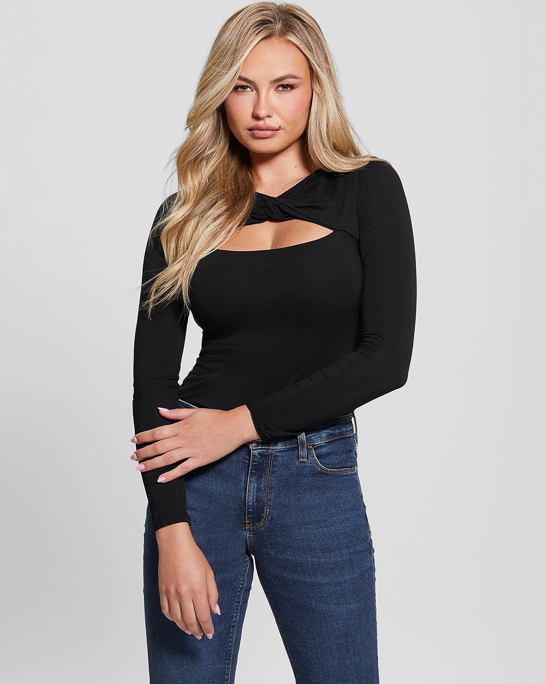 • Guess Women's Black Modal Solid Regular Fit Boat Neck Full Sleeve Top
