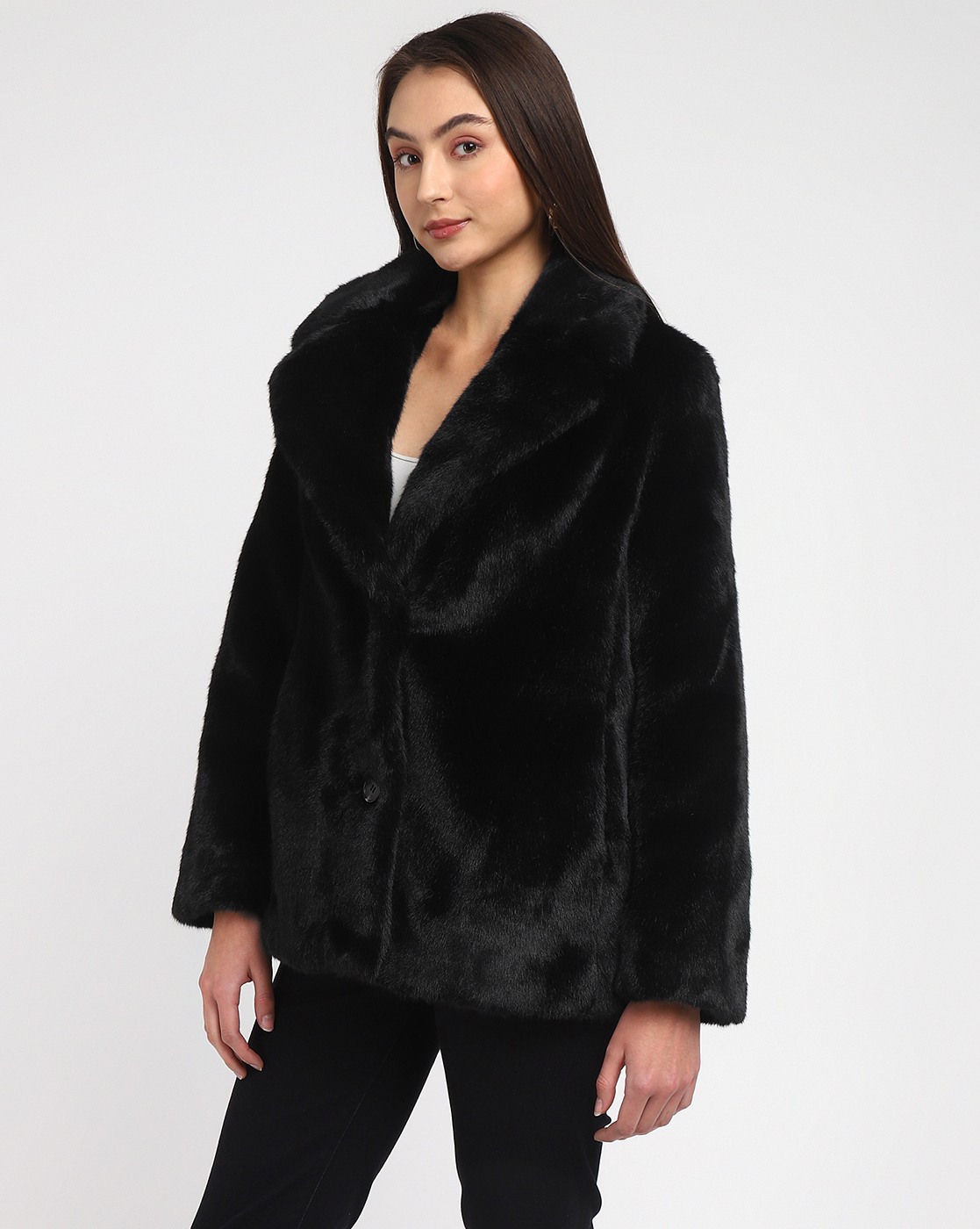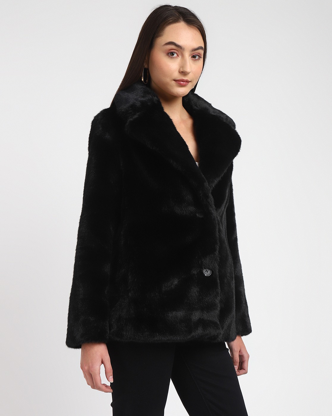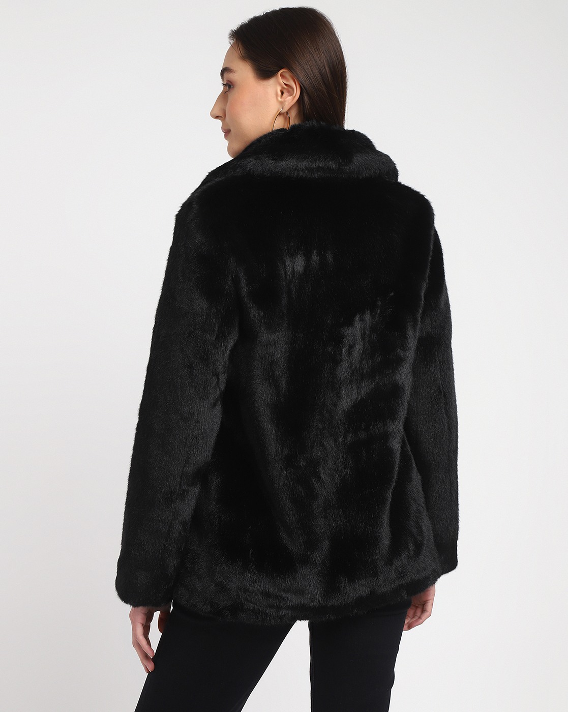 Women's Black Polyester Solid Regular Fit Collared Neck Full Sleeve Jacket