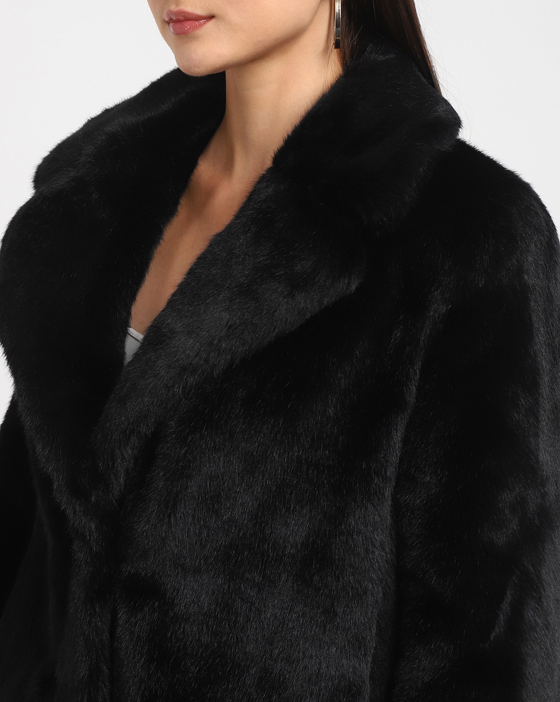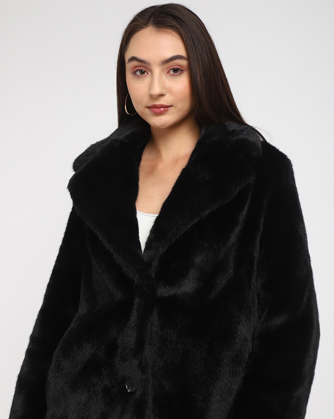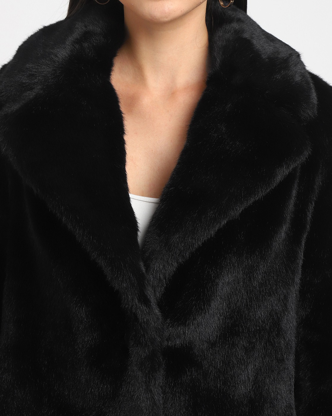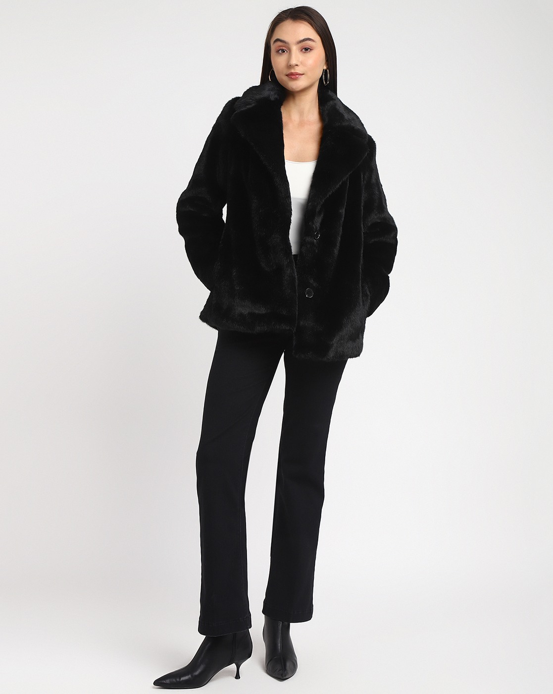 Women's Black Polyester Solid Regular Fit Collared Neck Full Sleeve Jacket