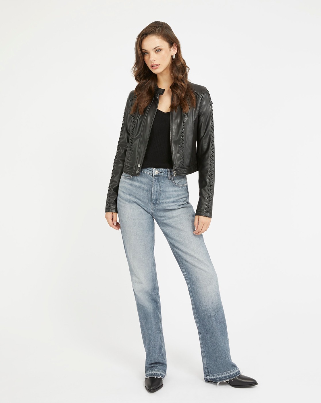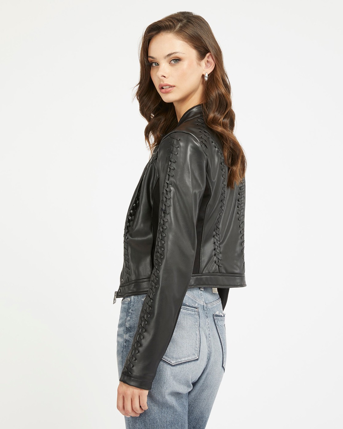 • Guess Women's Black Polyurethane Self Design Regular Fit Jacket