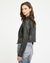Women's Black Polyurethane Self Design Regular Fit Jacket