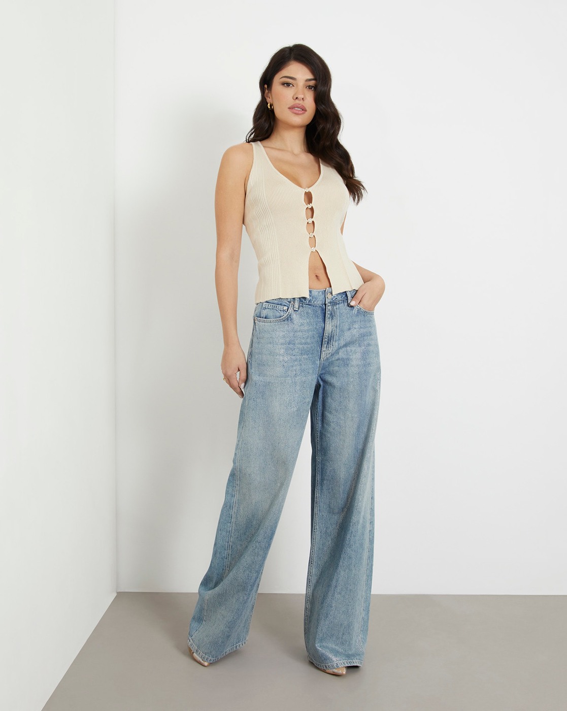 • Guess Women's Blue Cotton Solid Relaxed Fit Jeans