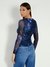 • Guess Women's Blue Polyamide Tropical Regular Fit Full Sleeves Top