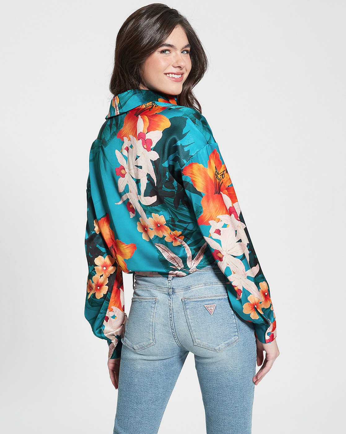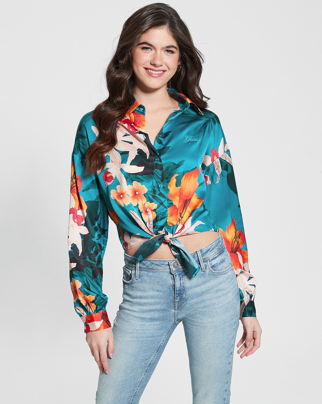 • Guess Women's Blue Polyester Floral Regular Fit Shirts