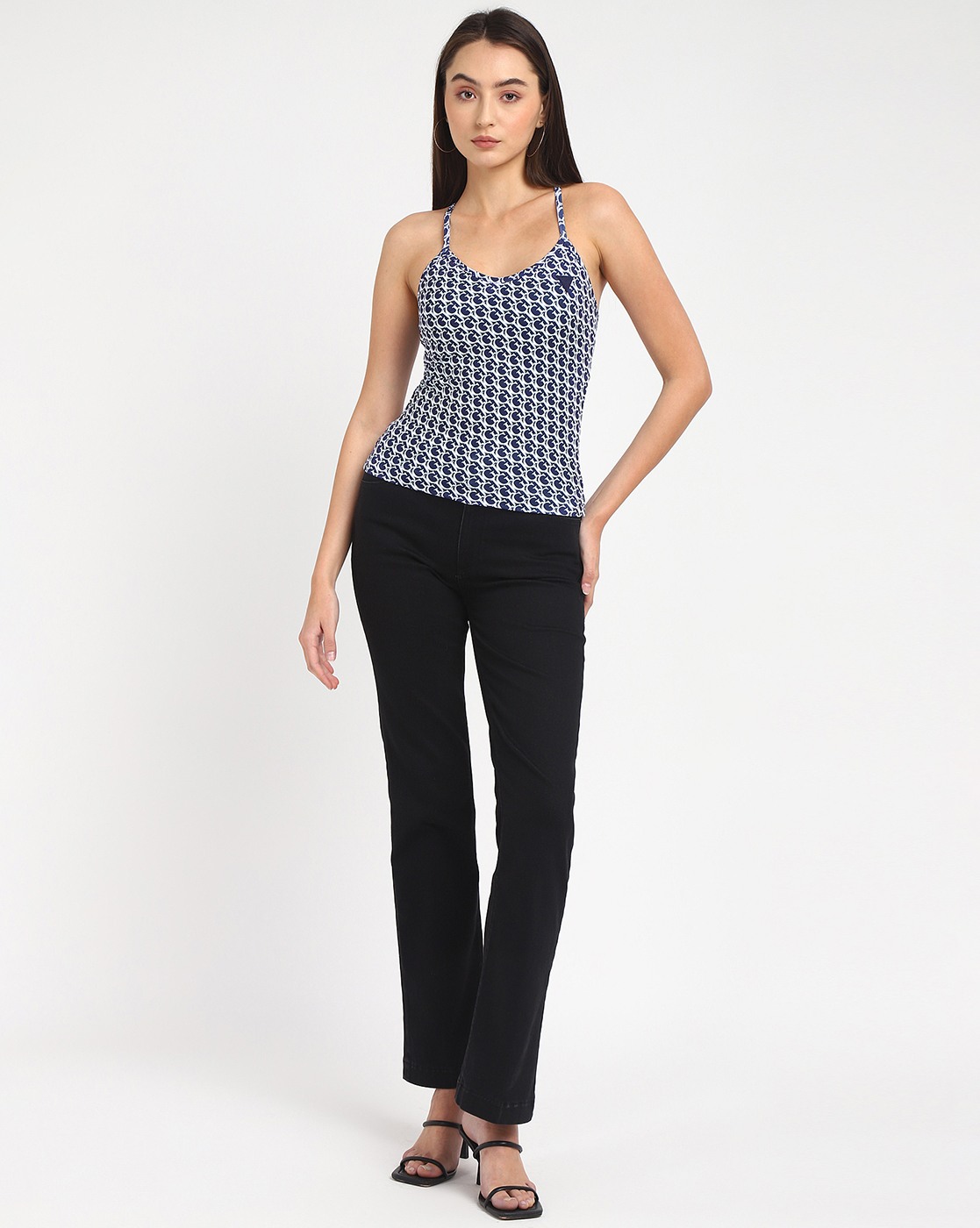 Women's Blue Polyester Monogram Regular Fit Top
