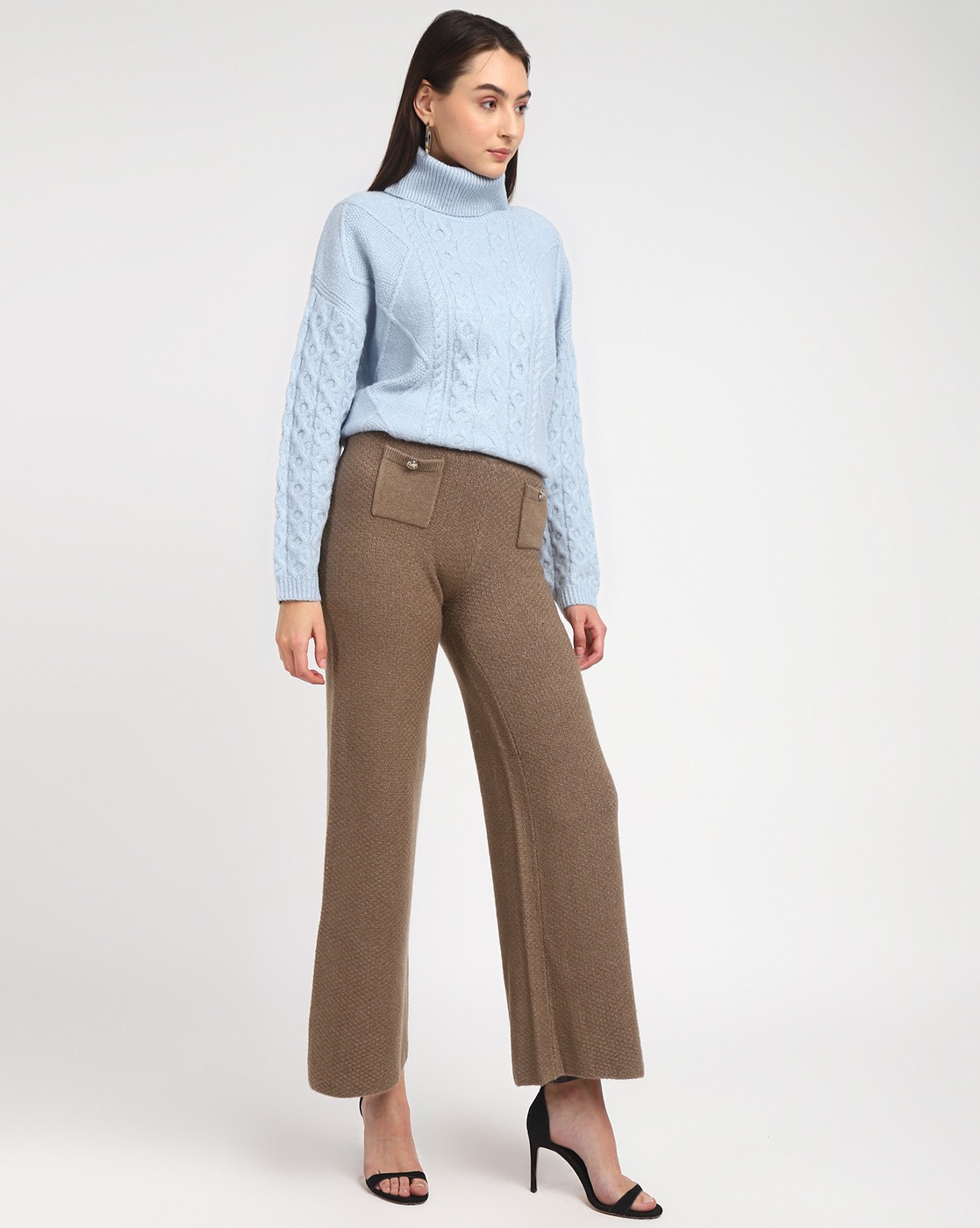 • Guess Women's Brown Polyamide Textured Regular Fit Palazzo