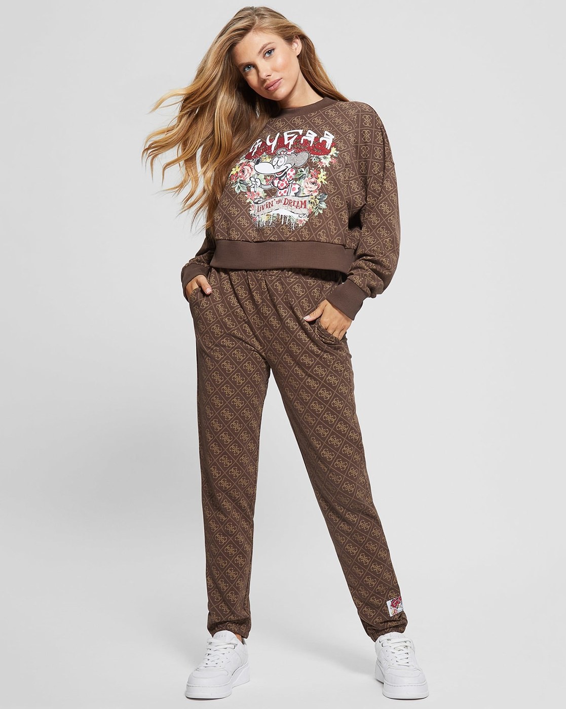 • Guess Women's Brown Polycotton Printed Regular Fit Round Neck Full Sleeve Sweatshirt