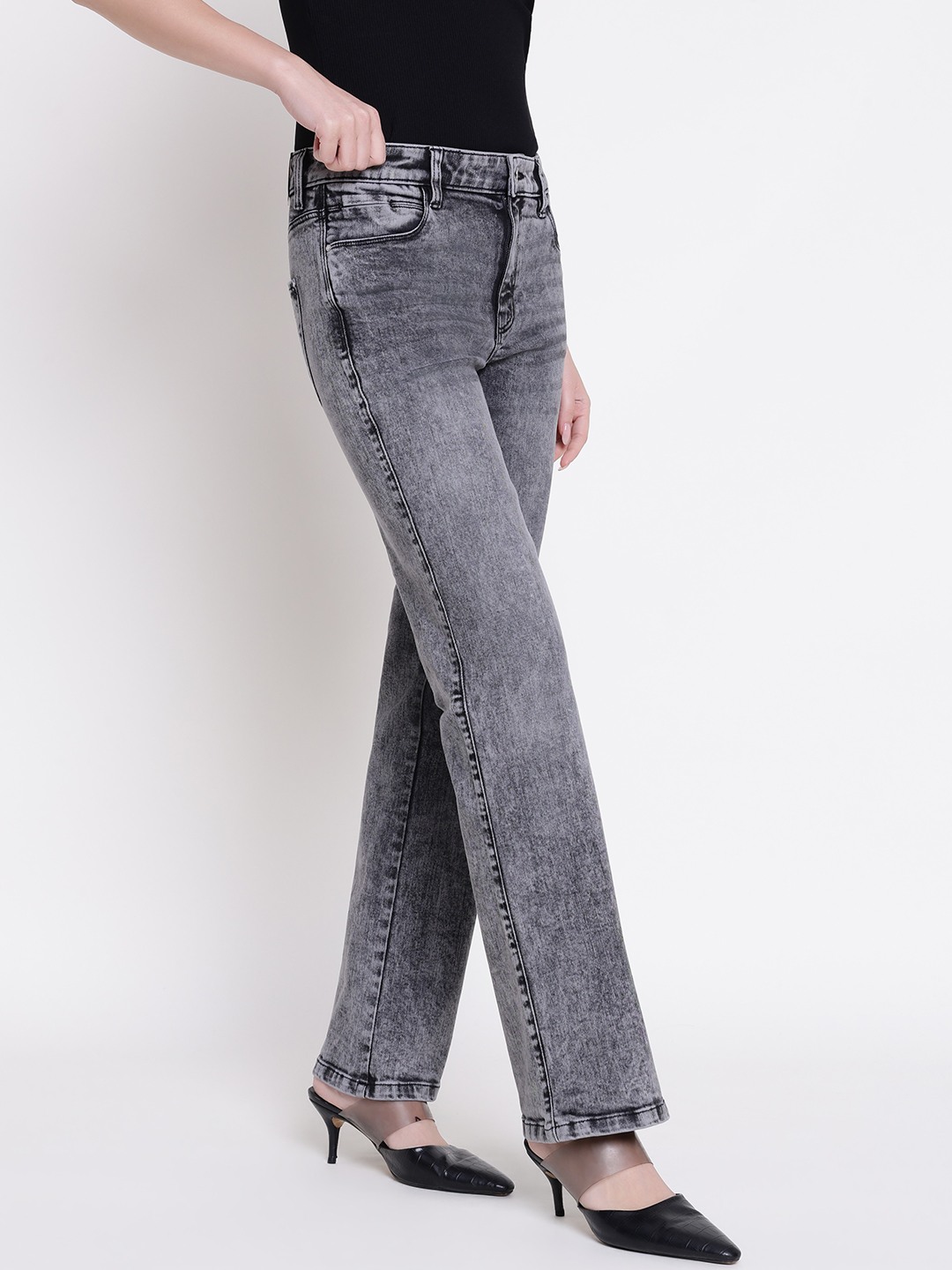 These sexy straight denim jeans in a stylish grey color are perfect for women seeking a versatile and comfortable look. Featuring a straight fit and high rise design, they offer a flattering silhouette. The solid pattern adds a classic touch, while the button closure ensures easy wear. Made from soft cotton fabric, these jeans provide all-day comfort and durability. Ideal for casual outings or dressing up for a night out, they are a must-have addition to any wardrobe.