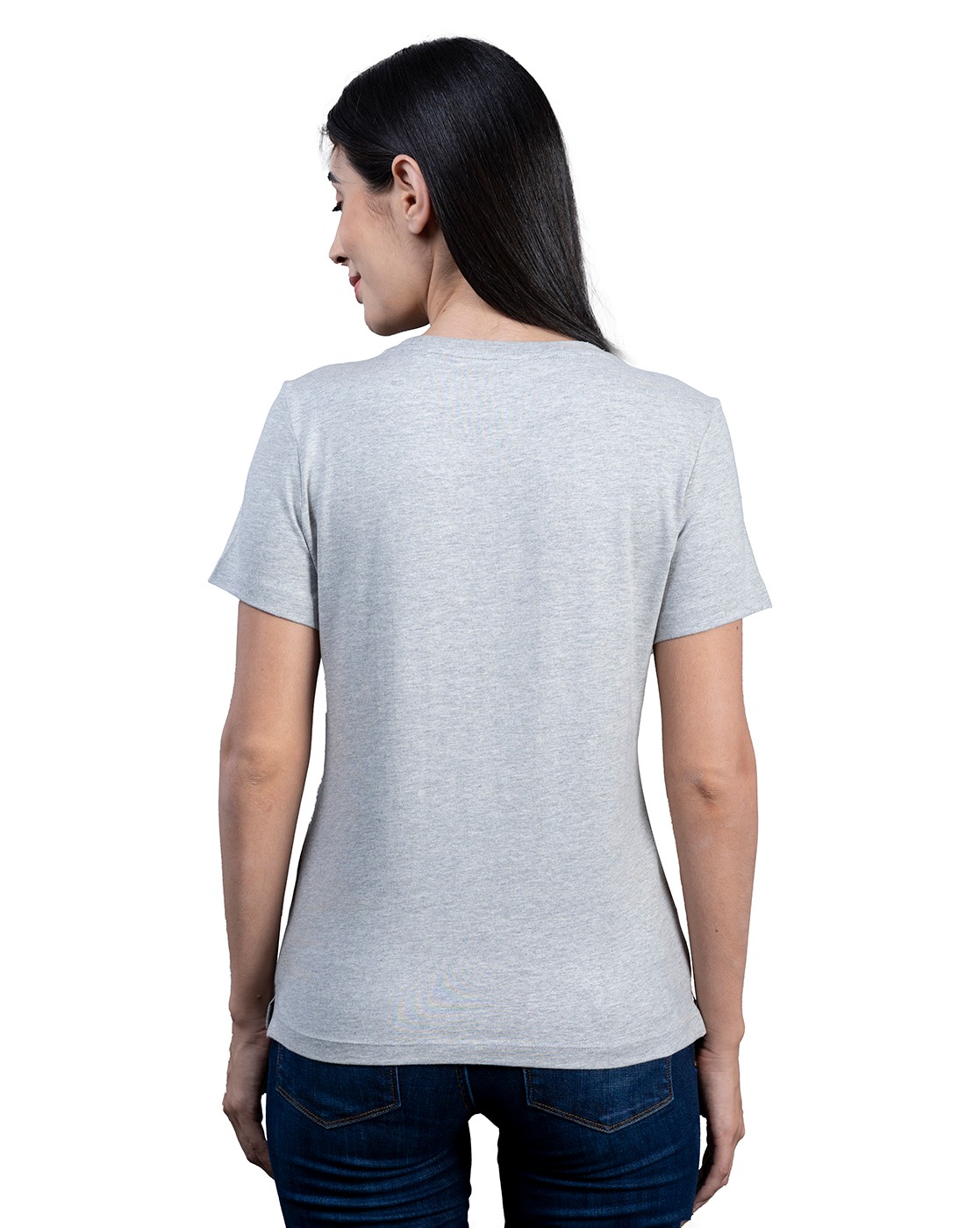 Women's Grey Melange Cotton Logo Regular Fit Half Sleeves T-shirt