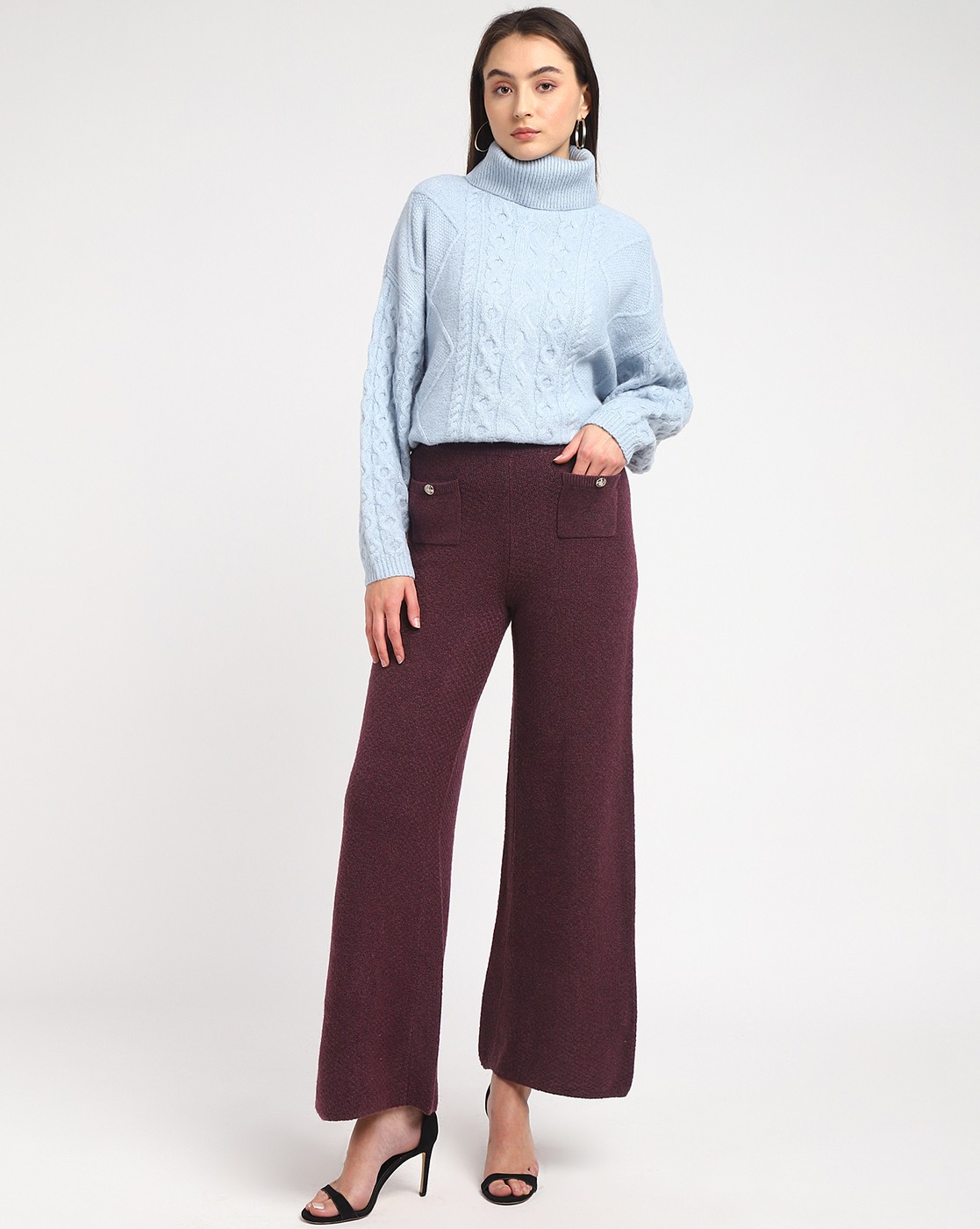 Women's Maroon Polyamide Textured Regular Fit Palazzo