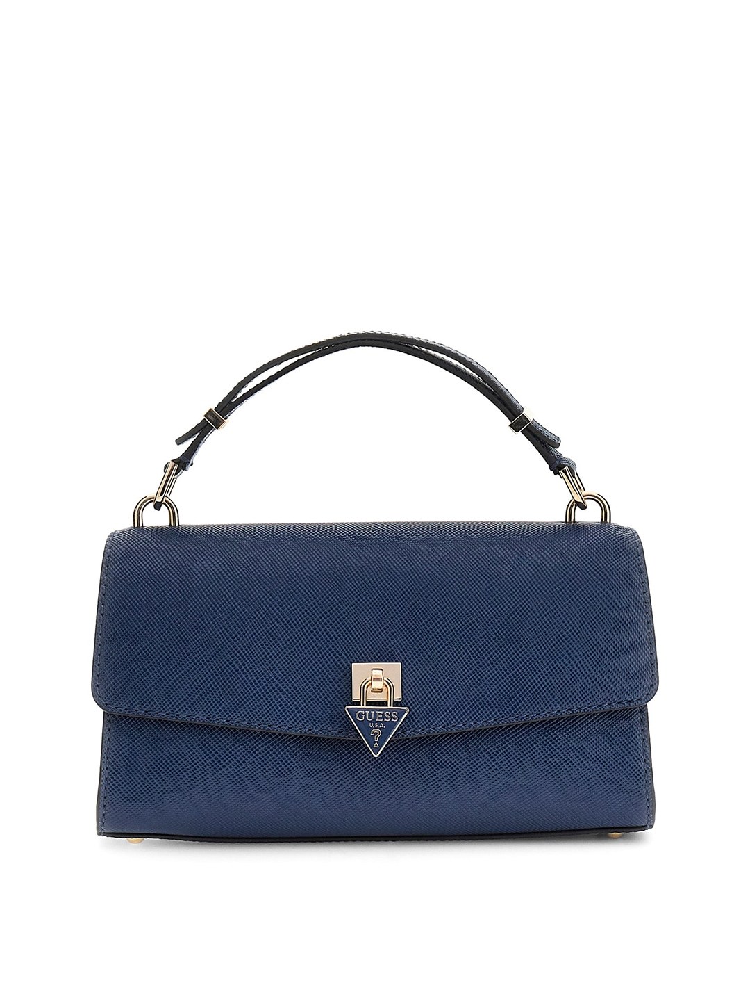 Women's Navy Solid Pu Patsie Top Handle Flap Satchel Bag