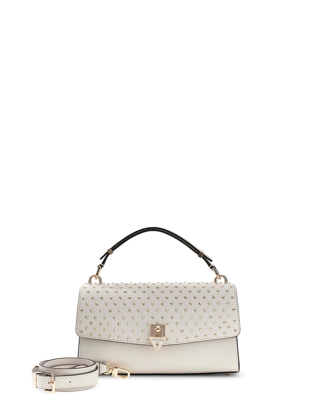 Discover the perfect blend of style and functionality with our off white satchel bag, crafted from high-quality pu fabric. This elegant accessory is designed for the modern woman who values both fashion and practicality. The satchel features an exquisite embellished pattern that adds a touch of sophistication to any outfit, making it ideal for both casual and formal occasions. Its spacious interior provides ample room for all your essentials, while the secure zip closure ensures your belongings are safe. The adjustable shoulder strap offers versatile carrying options, allowing you to wear it as a crossbody or over the shoulder for added convenience. Whether you're heading to the office or out for a weekend brunch, this satchel bag is your go-to accessory for effortless style. Elevate your wardrobe with this chic and versatile piece that seamlessly complements any ensemble, making it a must-have addition to your collection.