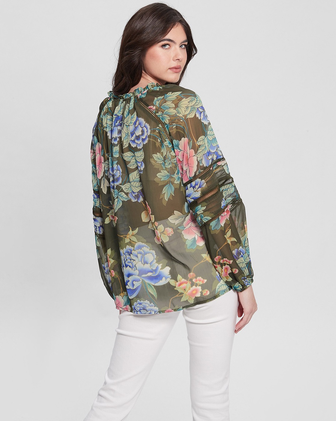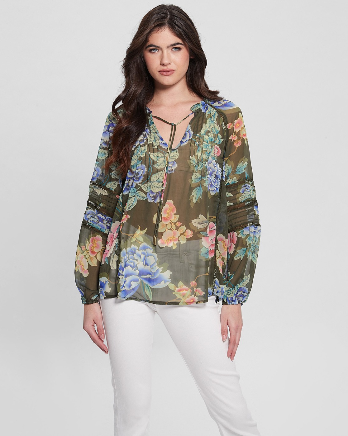 • Guess Women's Olive Polyester Floral Comfort Fit Top