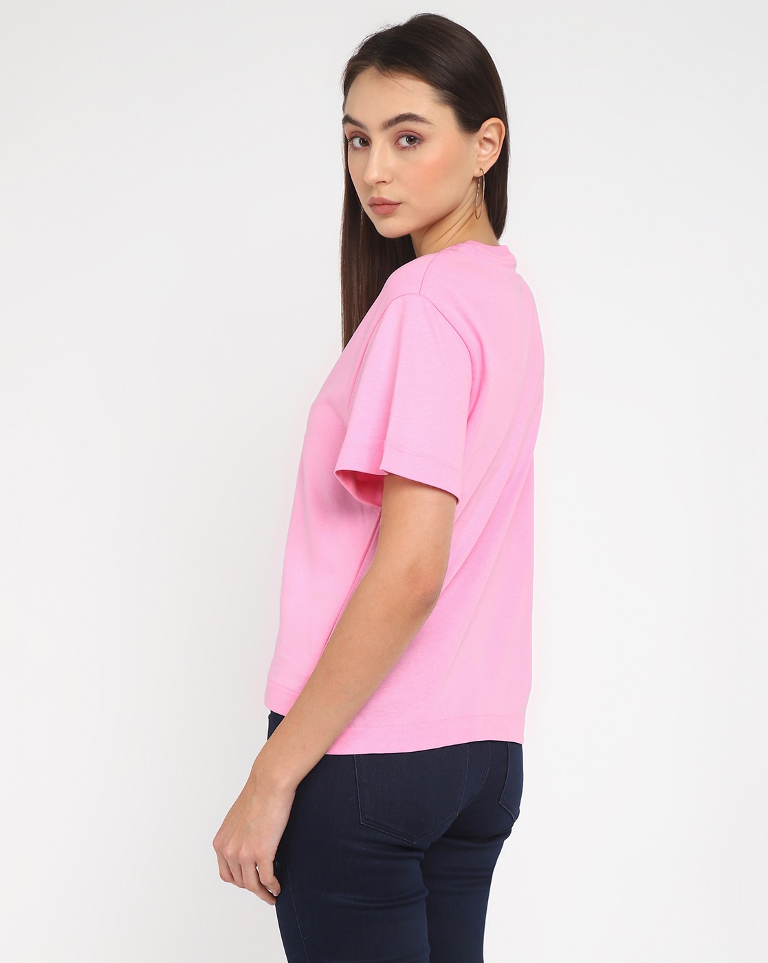 Women's Pink Cotton Logo Boxy Fit Half Sleeves T-shirt
