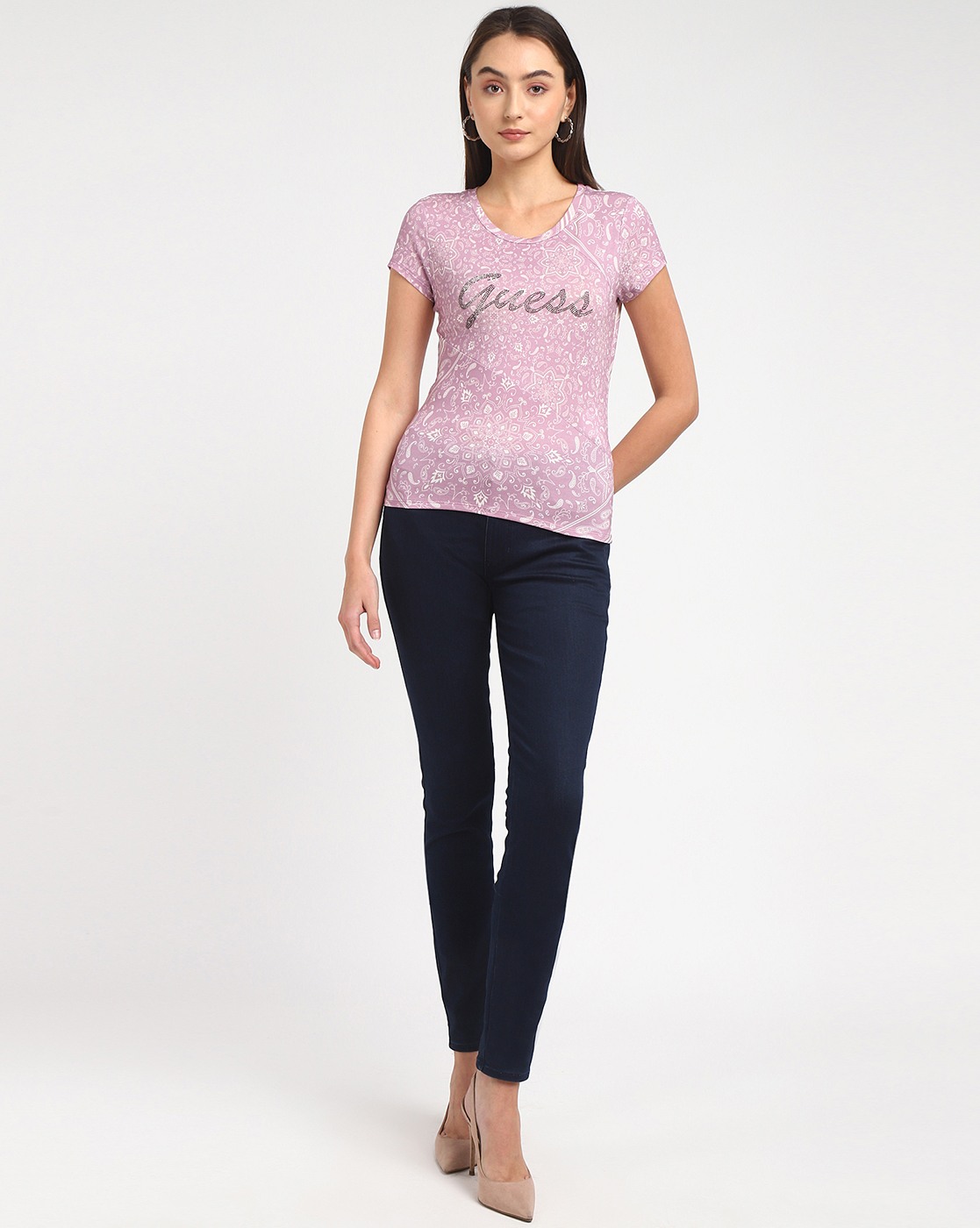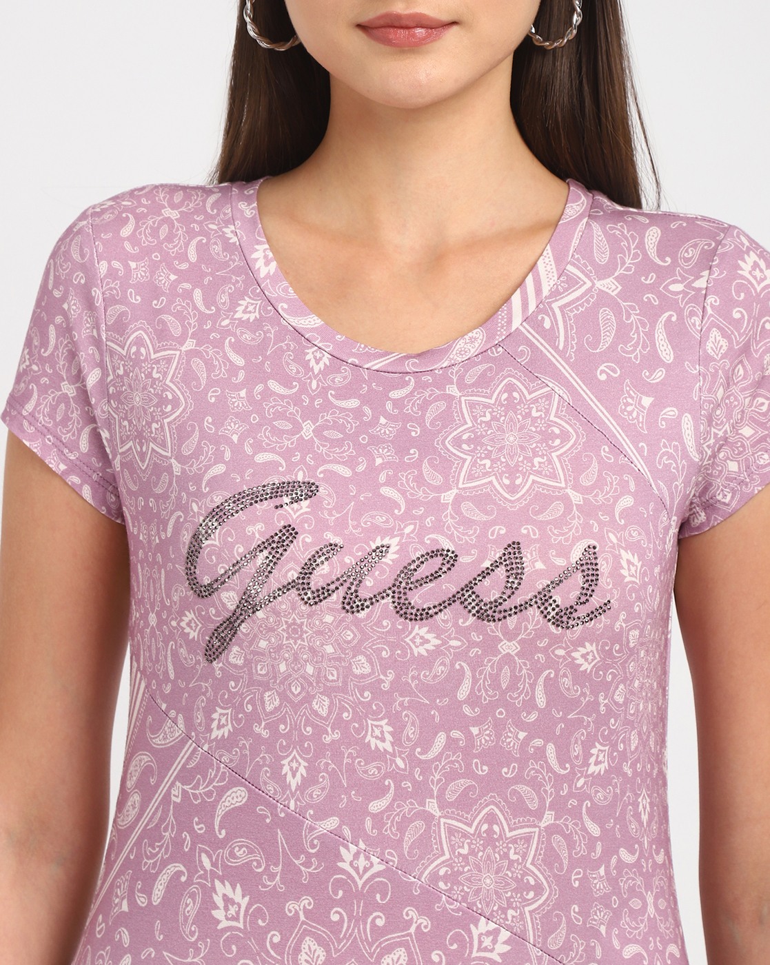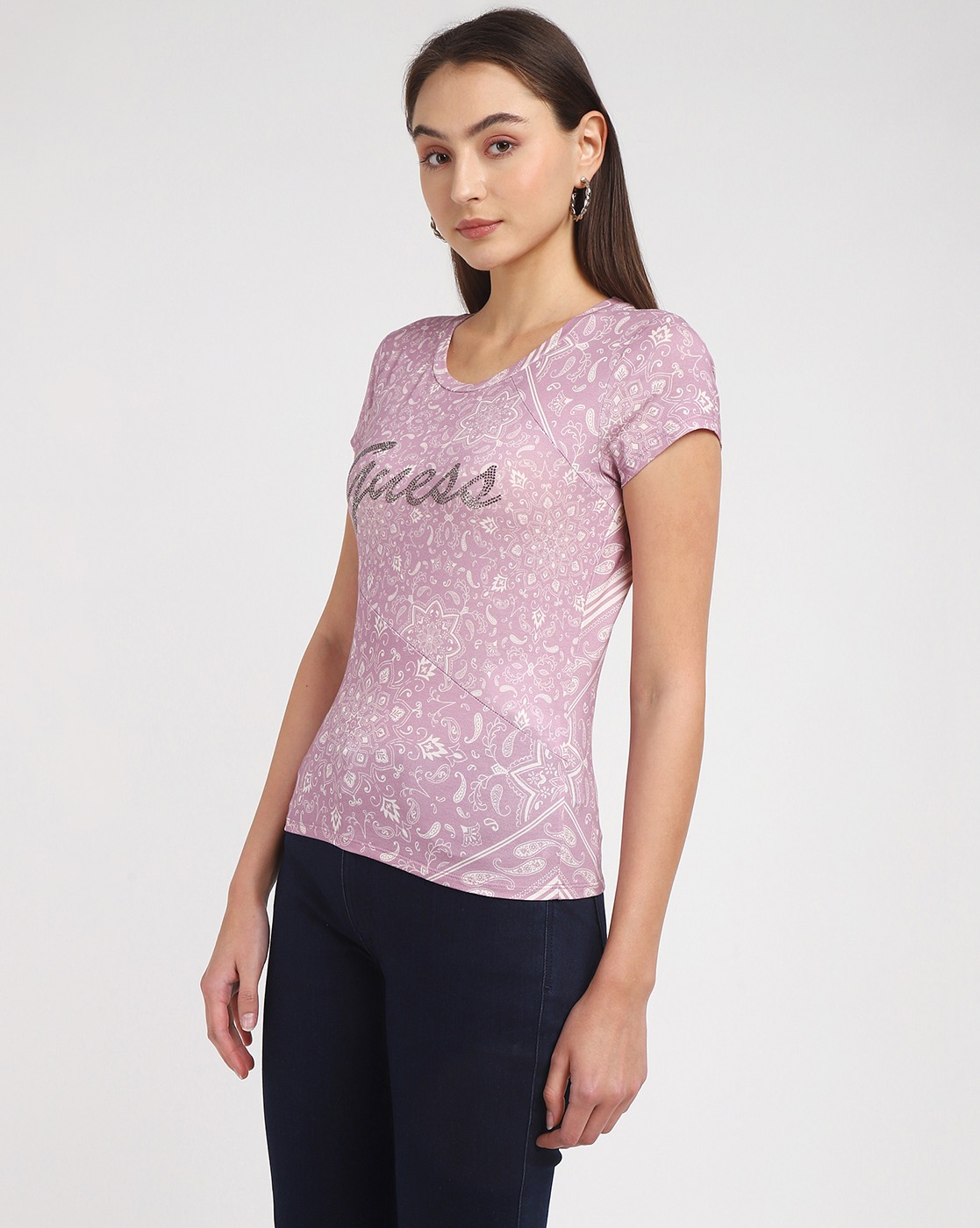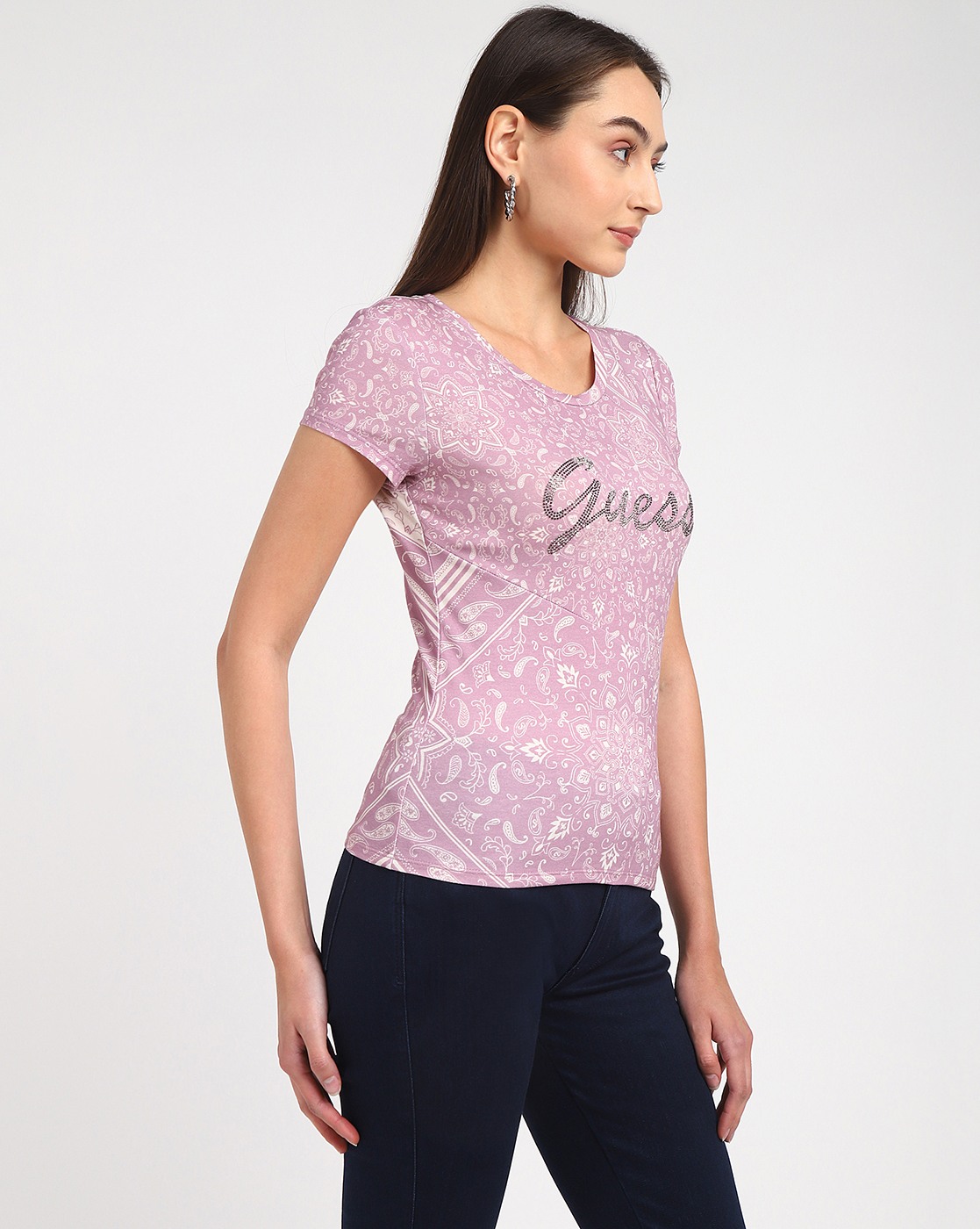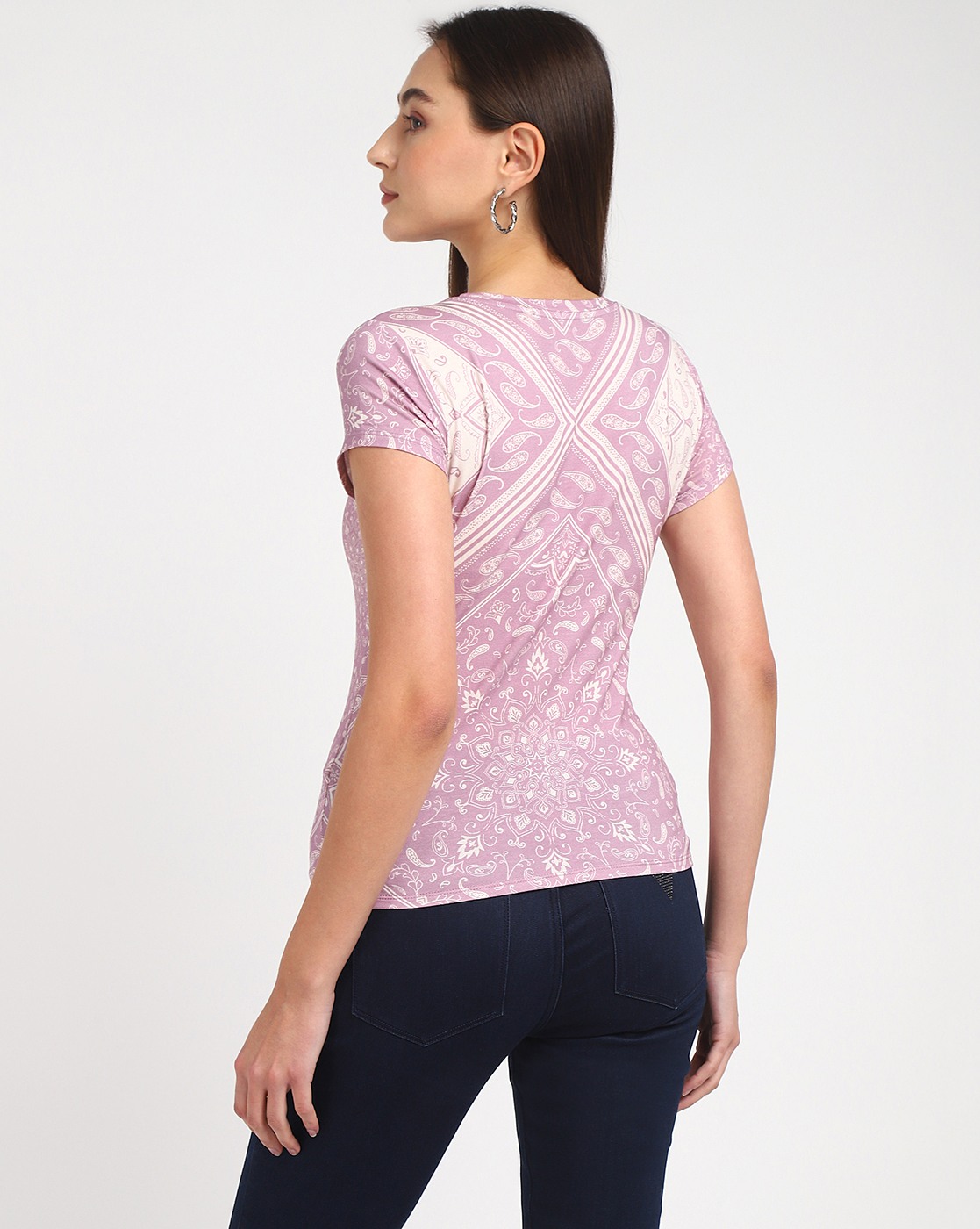 • Guess Women's Pink Cotton Paisley Regular Fit T-shirt