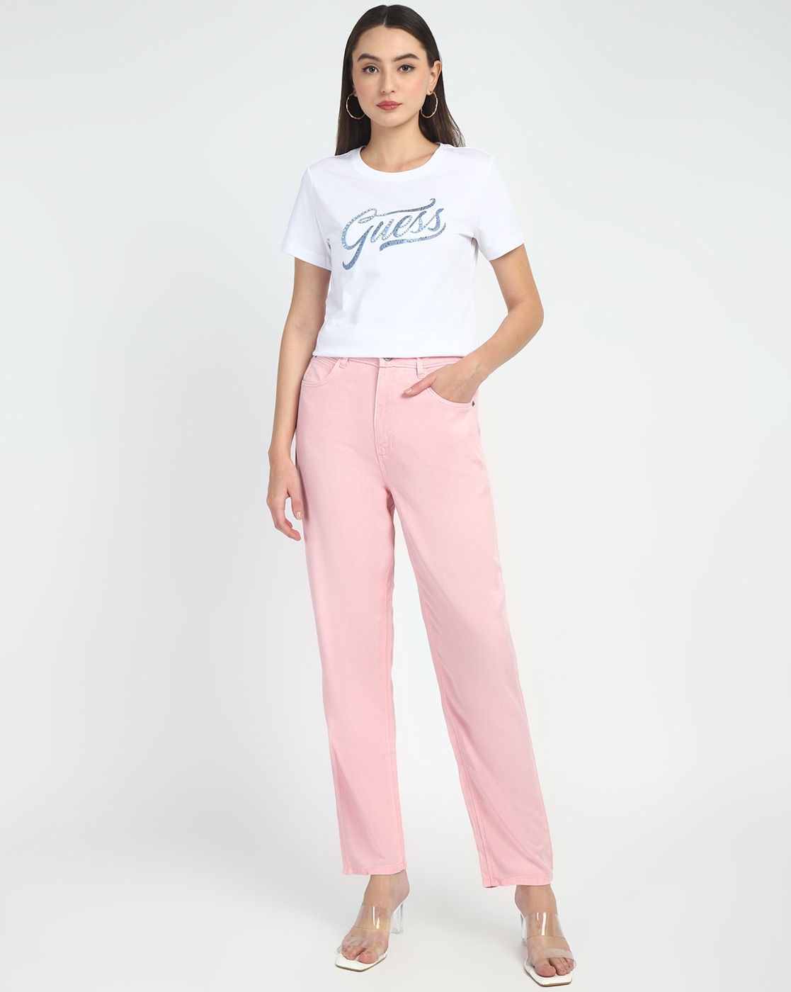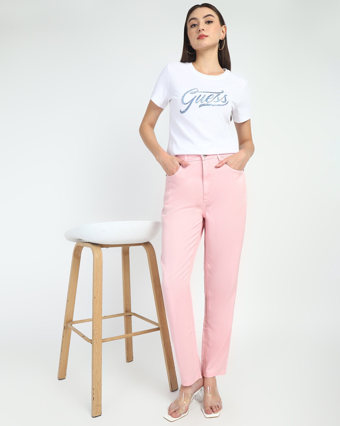 • Guess Women's Pink Lyocell Solid Relaxed Fit Jeans