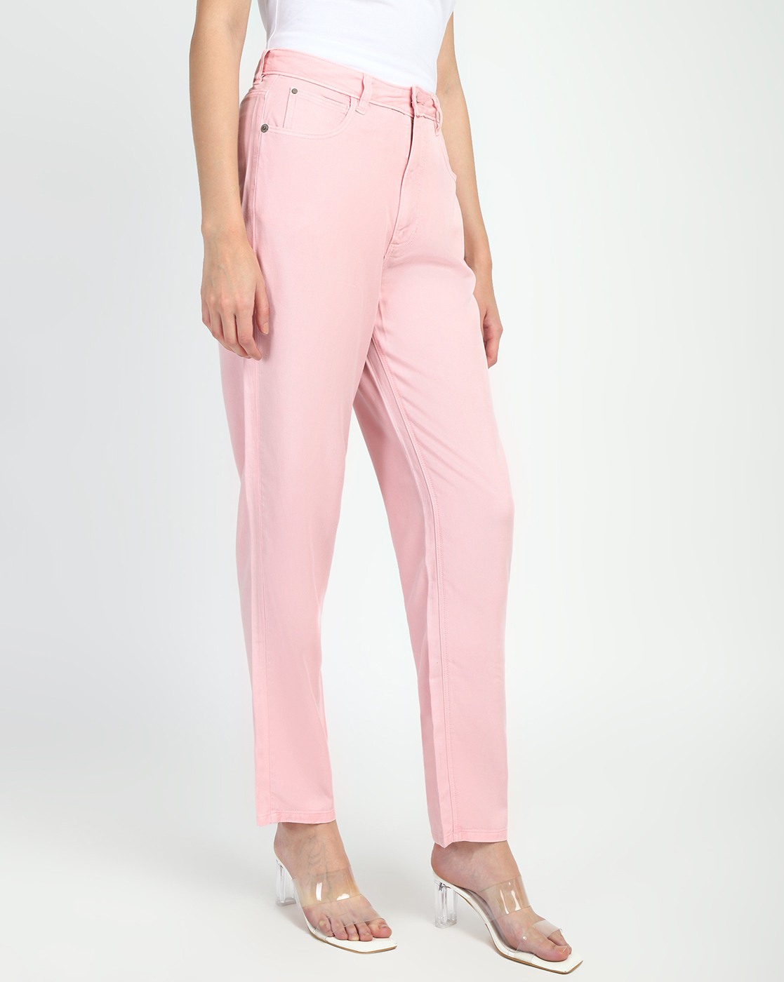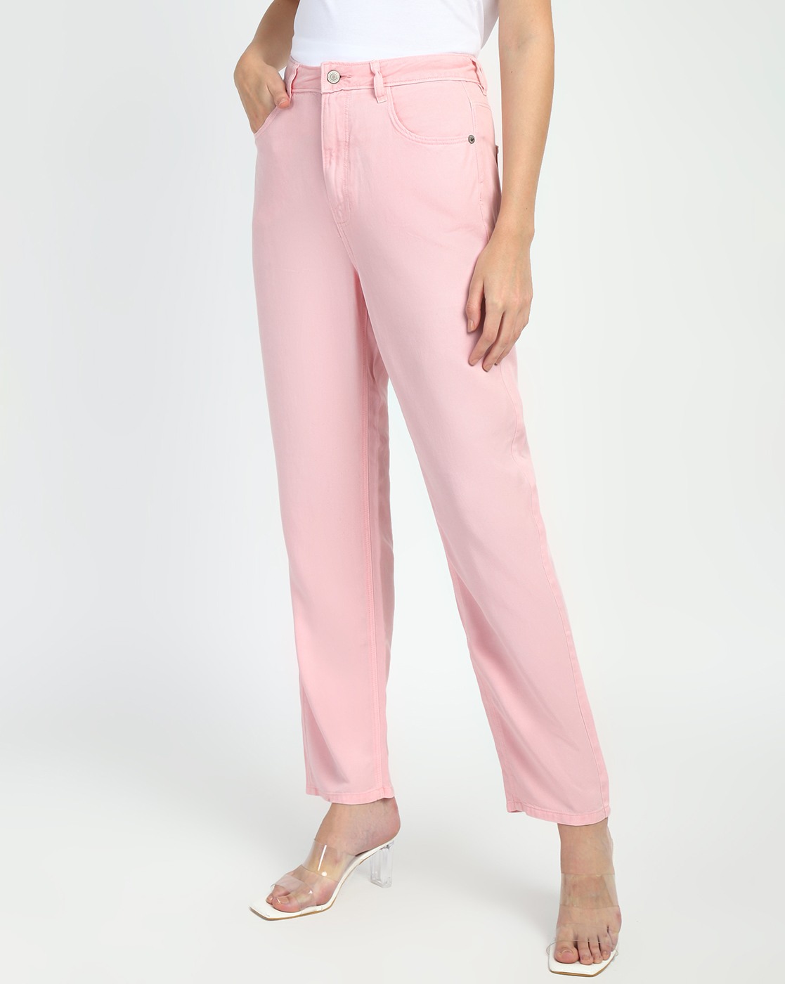 Women's Pink Lyocell Solid Relaxed Fit Jeans