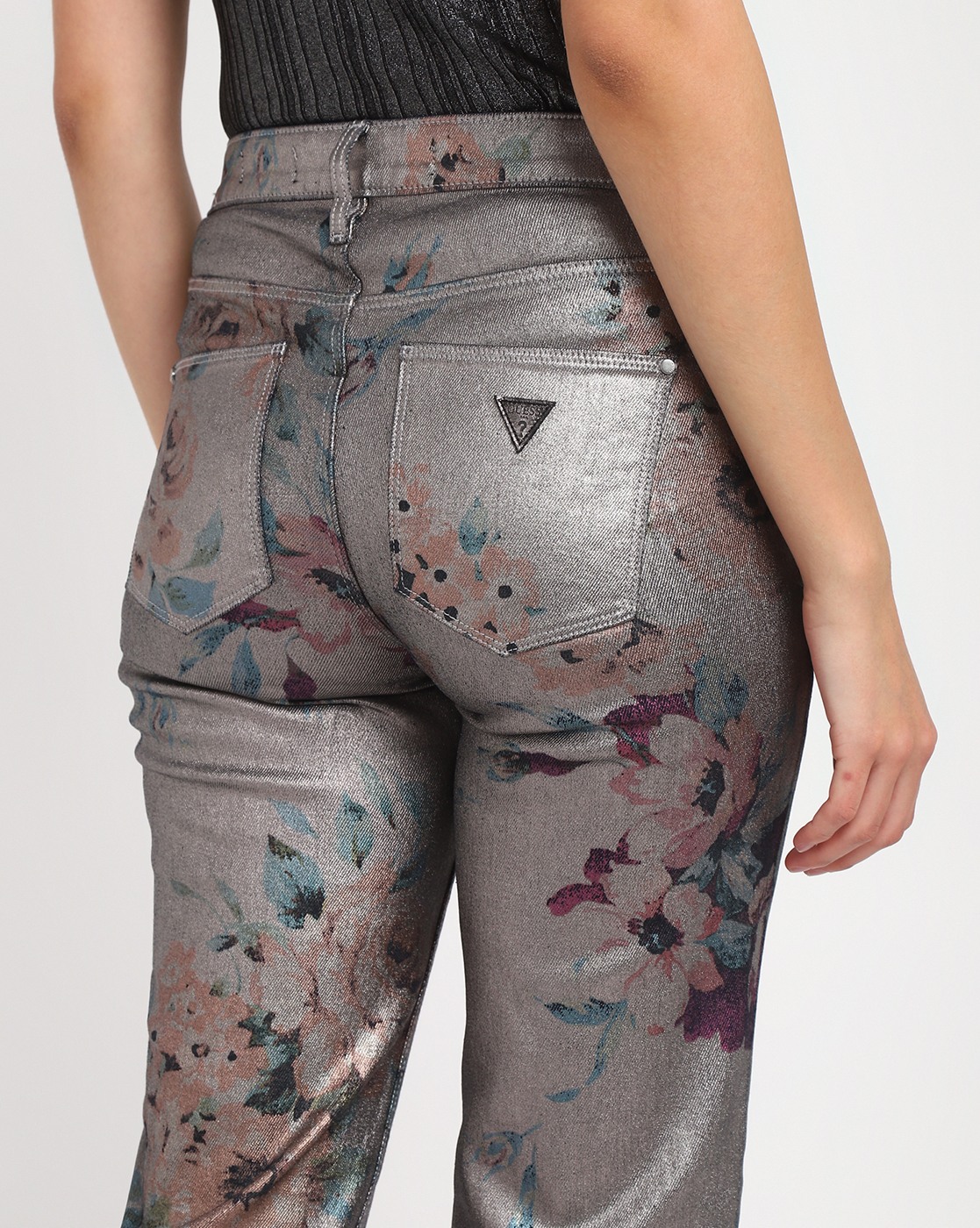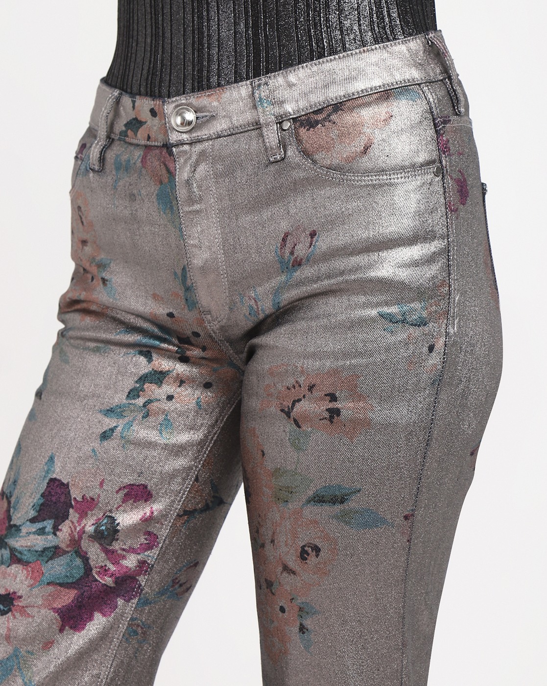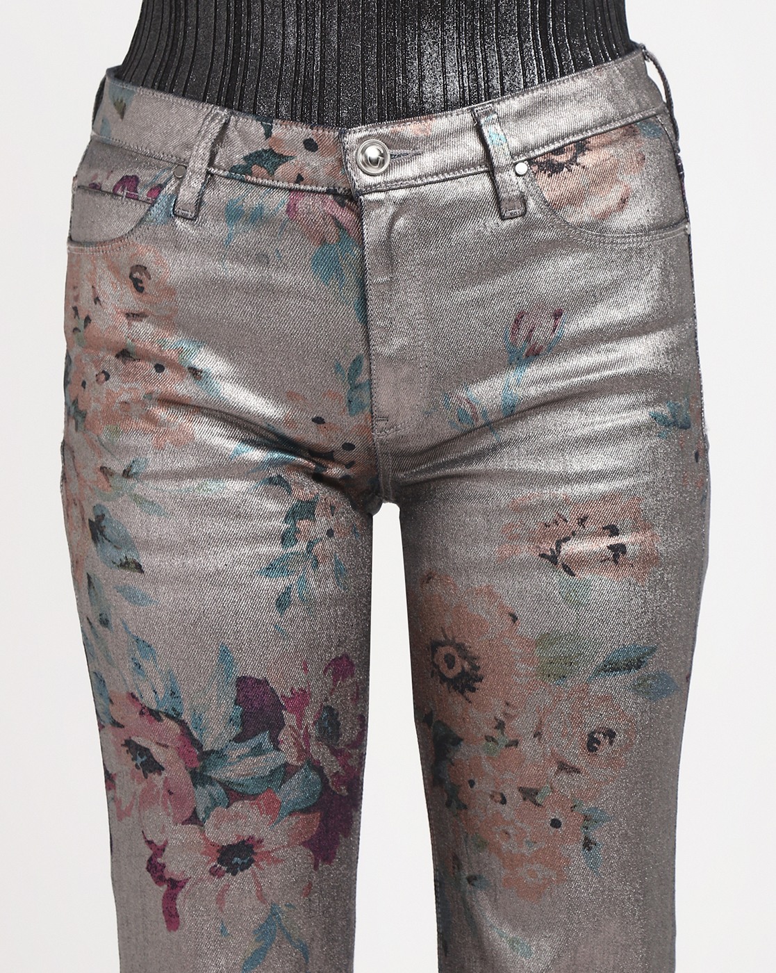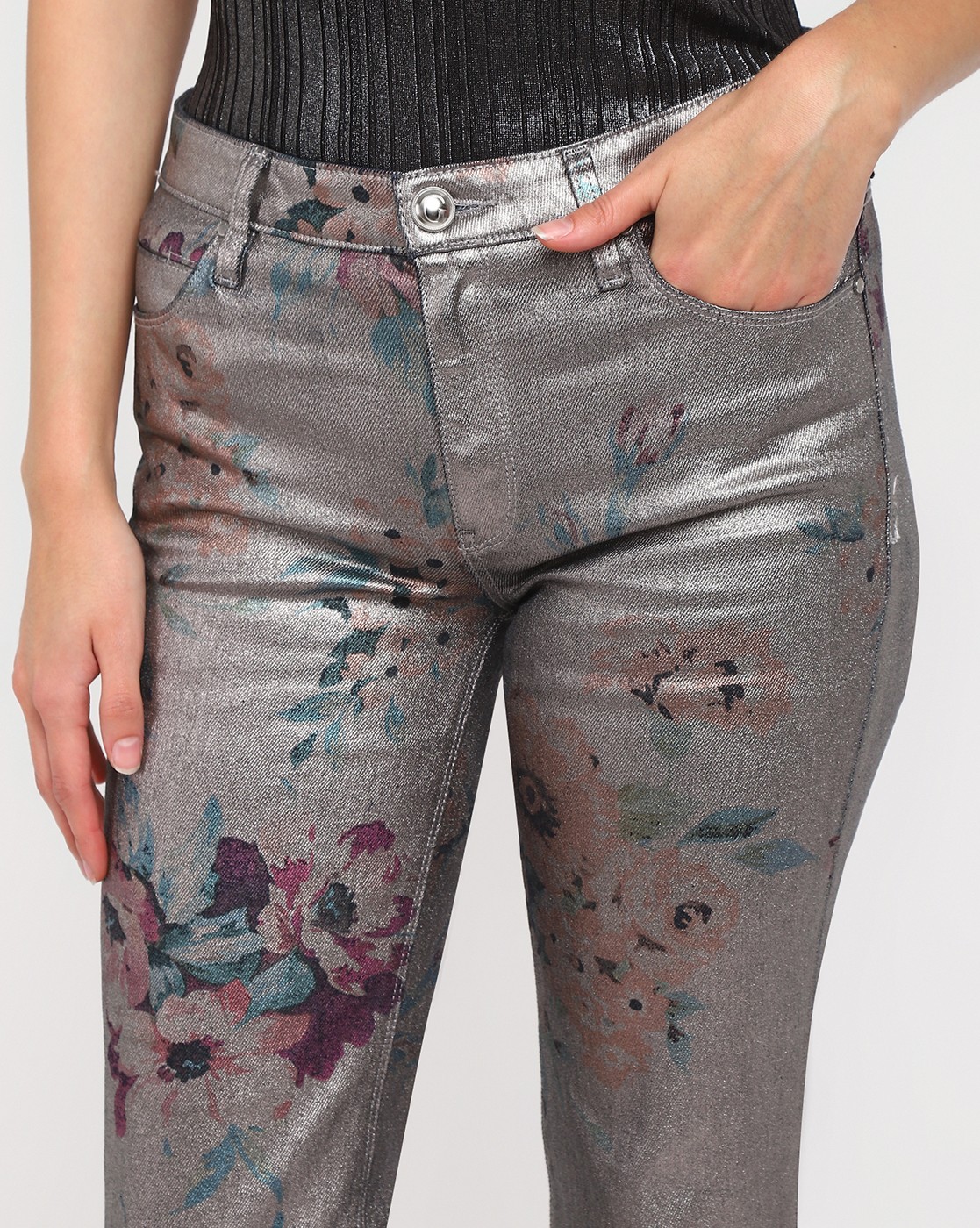 • Women's Silver Cotton Printed Slim Fit Jeans