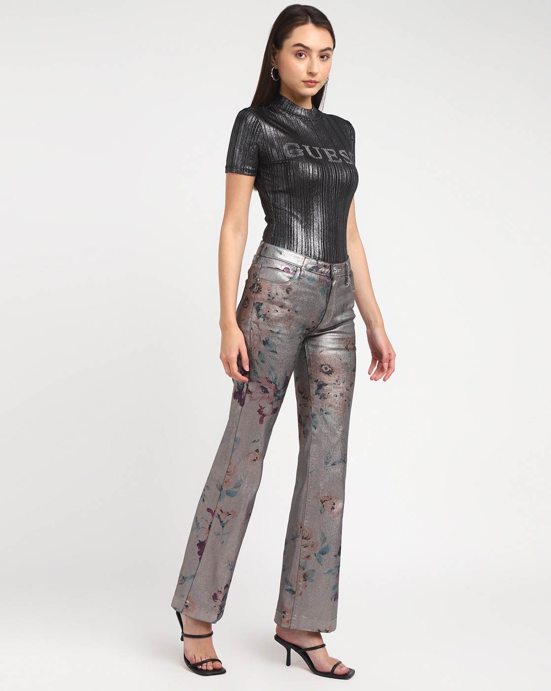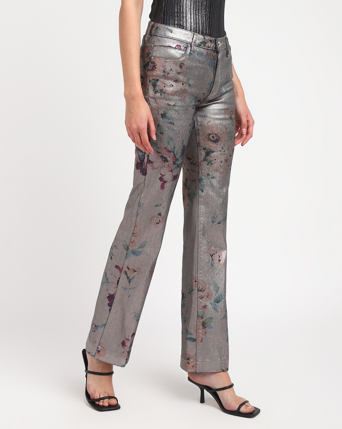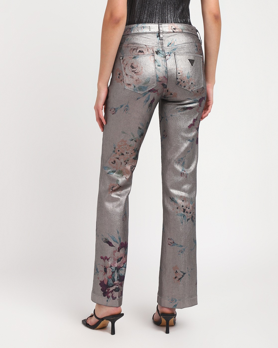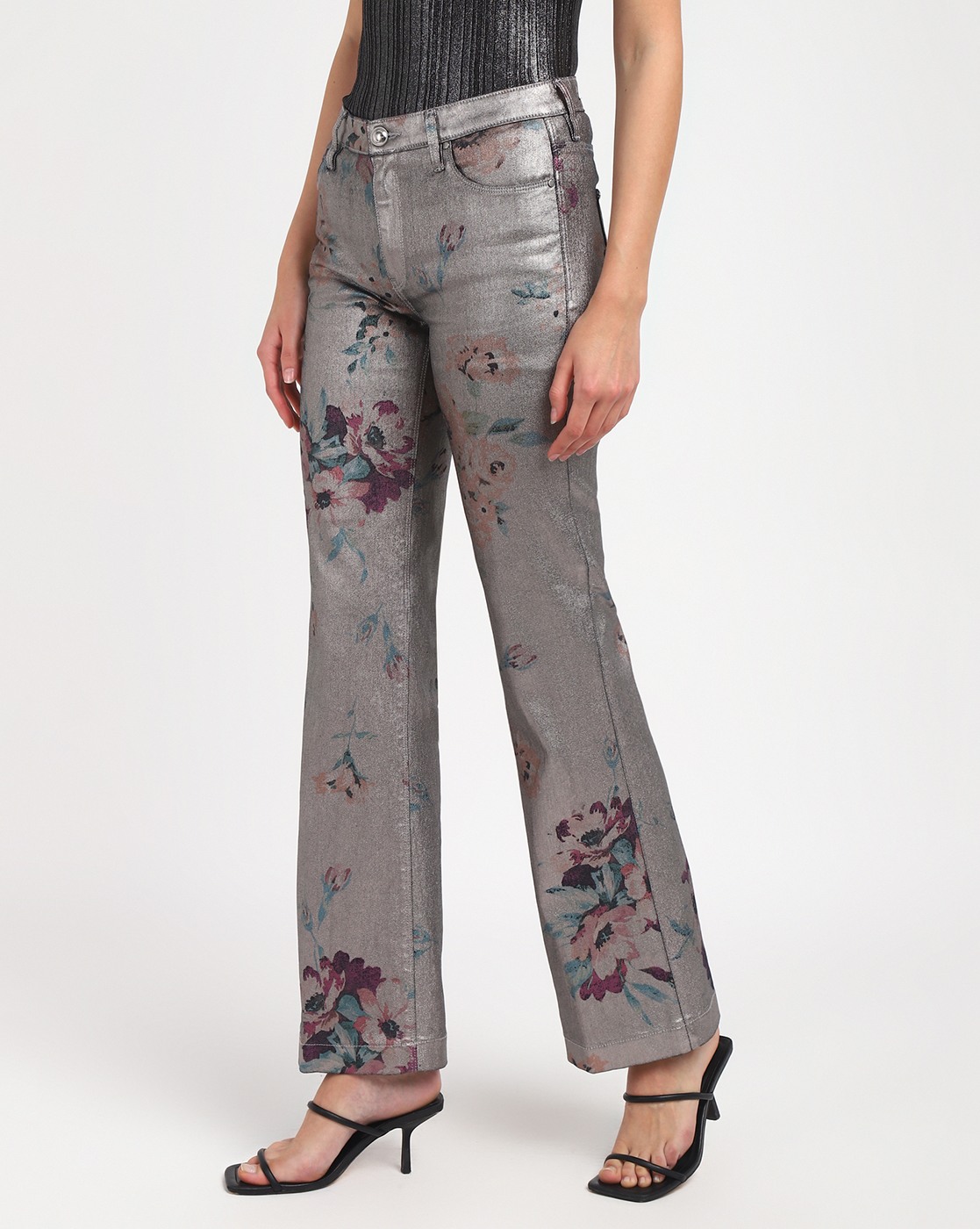 • Women's Silver Cotton Printed Slim Fit Jeans