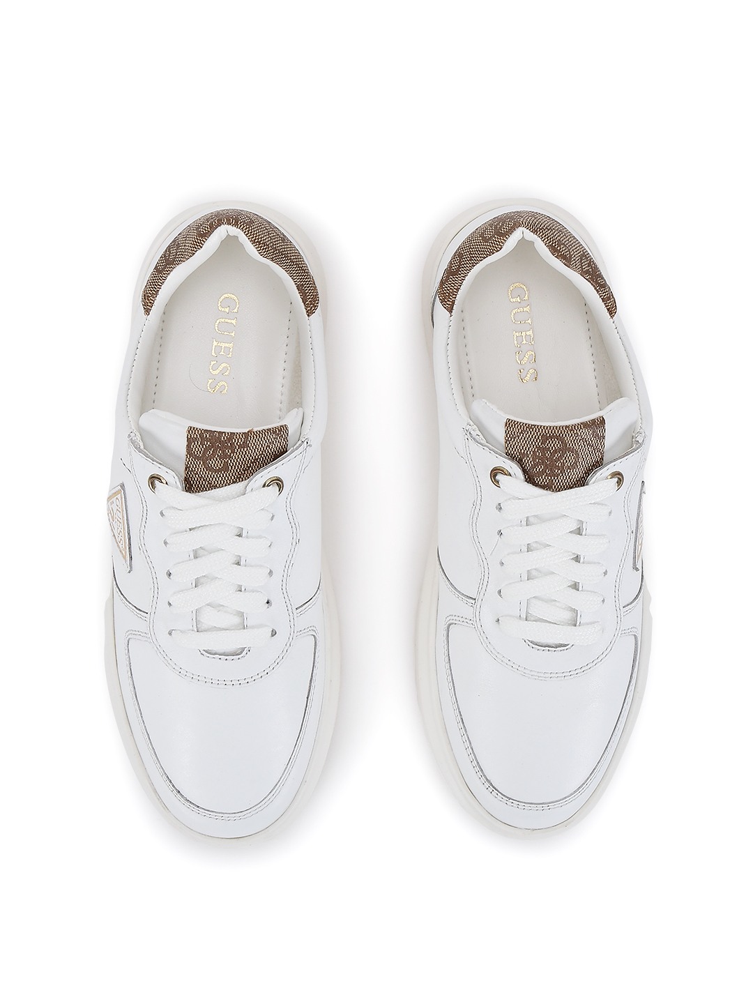 Step into style with our lace-up sneakers in a classic white color crafted from premium leather. These sneakers feature an elegant monogram pattern that adds a touch of sophistication to any outfit. Designed for women who value both comfort and fashion, the lace-up design ensures a secure fit while the cushioned insole provides all-day comfort. Perfect for casual outings or a day at the office, these sneakers effortlessly blend versatility with chic appeal. Elevate your footwear collection with this timeless pair.