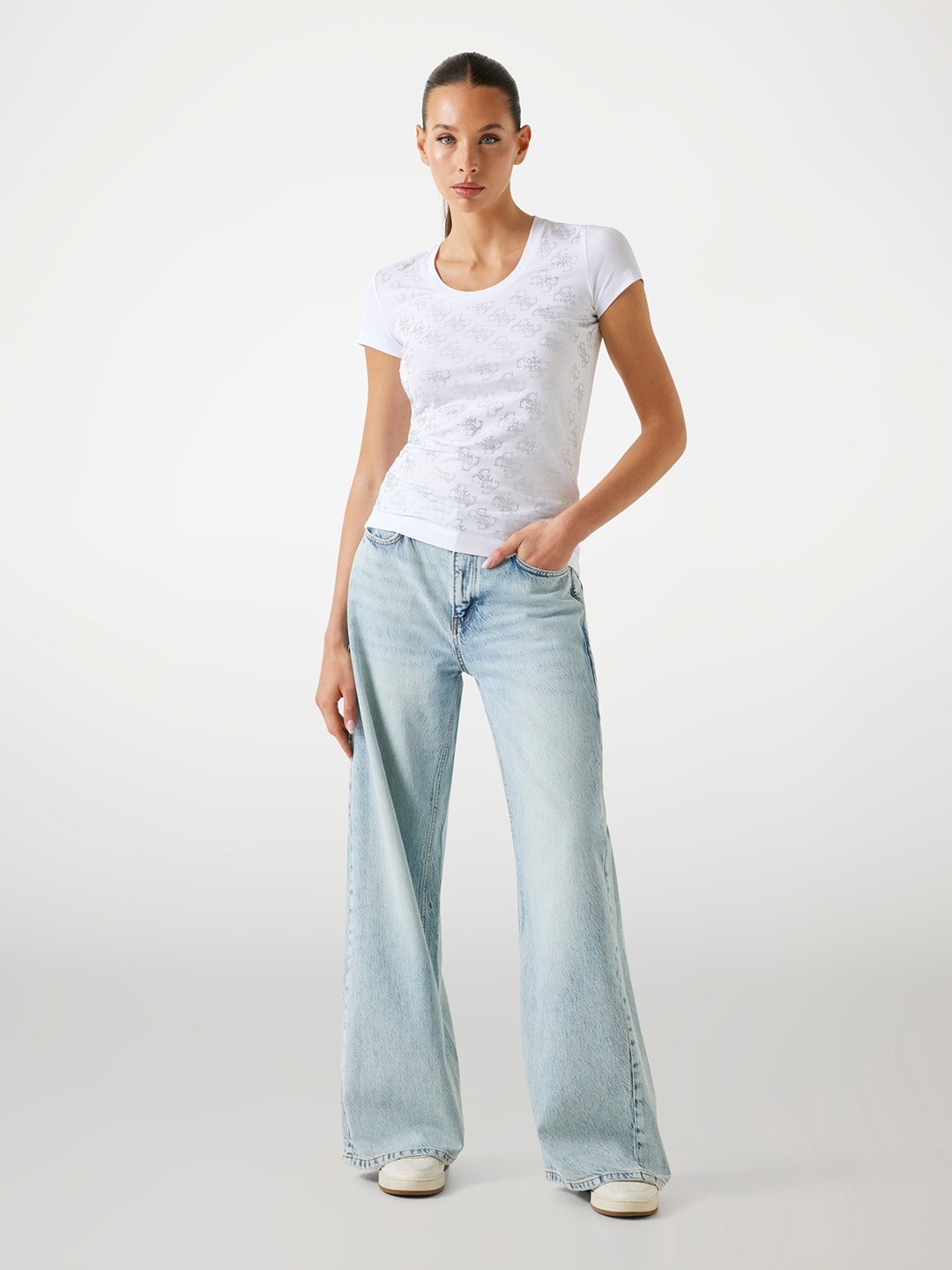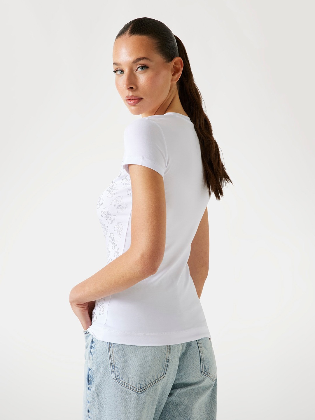 • Guess Women's White Cotton Monogram Slim Fit T-shirt