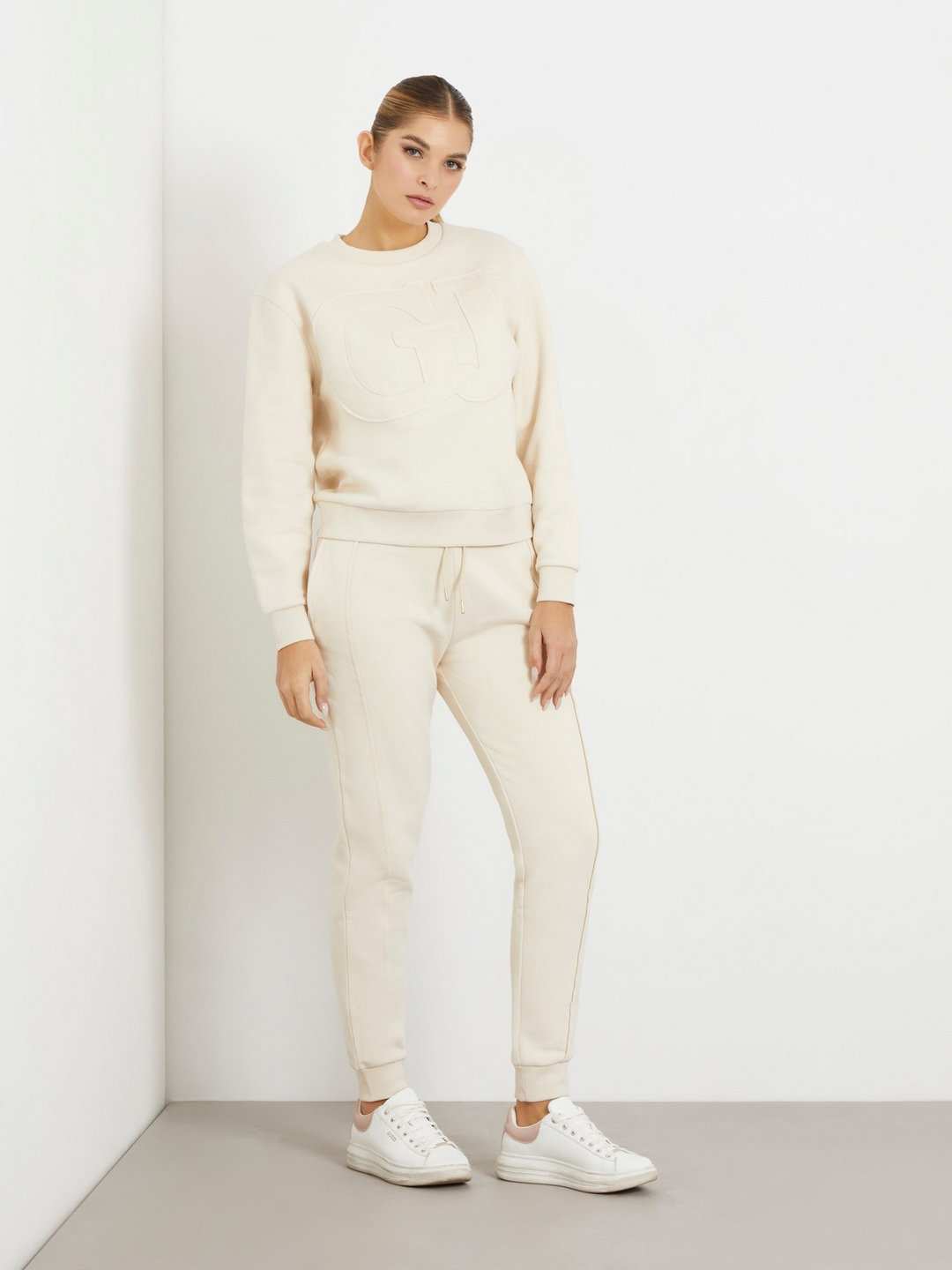 Women Vanilla Blush Solid Brushed Fleece Joggers