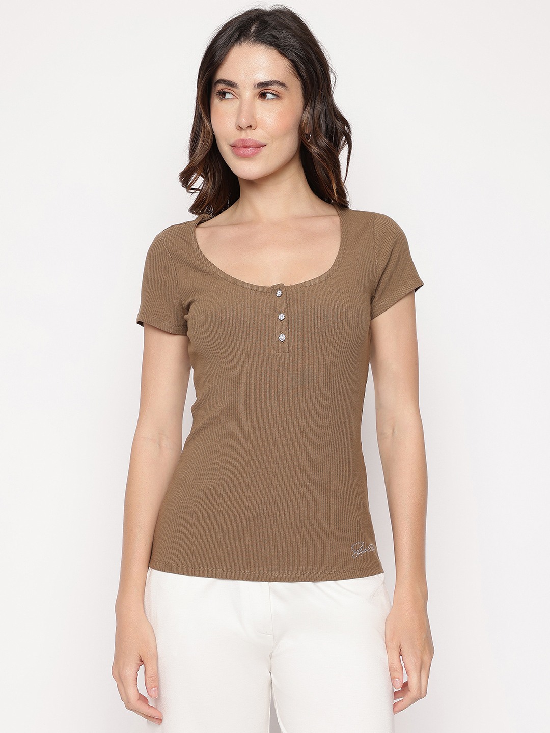 Elevate your wardrobe with our chic and versatile regular fit top, designed for the modern woman who values both comfort and style. Crafted from a luxurious blend of 93% viscose and 7% elastane, this top offers a soft, breathable feel with just the right amount of stretch for a flattering silhouette. The solid pattern provides a timeless appeal, making it a perfect staple for any occasion. Featuring a sophisticated scoop neck and short sleeves, this top effortlessly combines elegance with casual ease. The slip-on closure ensures a hassle-free dressing experience, allowing you to focus on your day with confidence. Whether paired with your favorite jeans for a relaxed look or dressed up with a skirt for a night out, this top is a must-have addition to your collection. Experience the perfect blend of comfort and style with this essential piece that promises to become a go-to favorite.