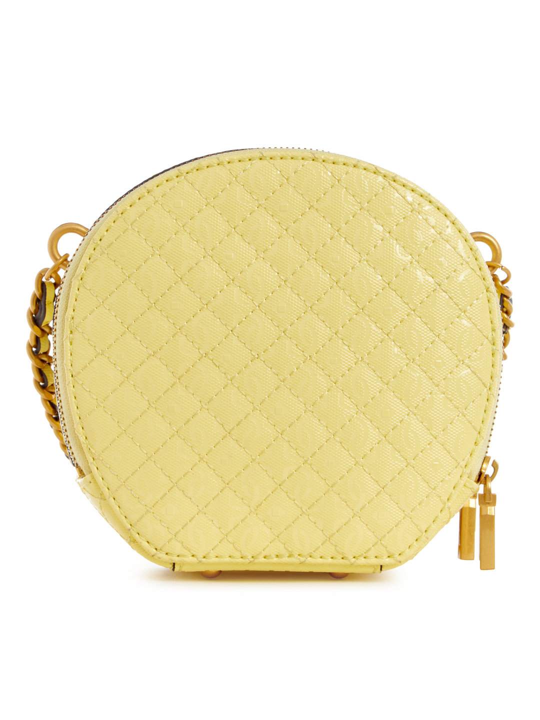 The nerina circle crossbody bag in vibrant yellow is a stylish and practical accessory for women. Crafted from durable polyurethane fabric, it features a charming quilted pattern that adds texture and elegance. The compact circular design makes it perfect for carrying essentials while maintaining a trendy look. The adjustable strap ensures a comfortable fit for all-day wear. Its spacious interior provides enough room for your phone, wallet, and keys. Whether for casual outings or special occasions, this bag adds a pop of color and a touch of sophistication to any outfit. Enjoy a blend of fashion and function with the nerina circle crossbody bag.