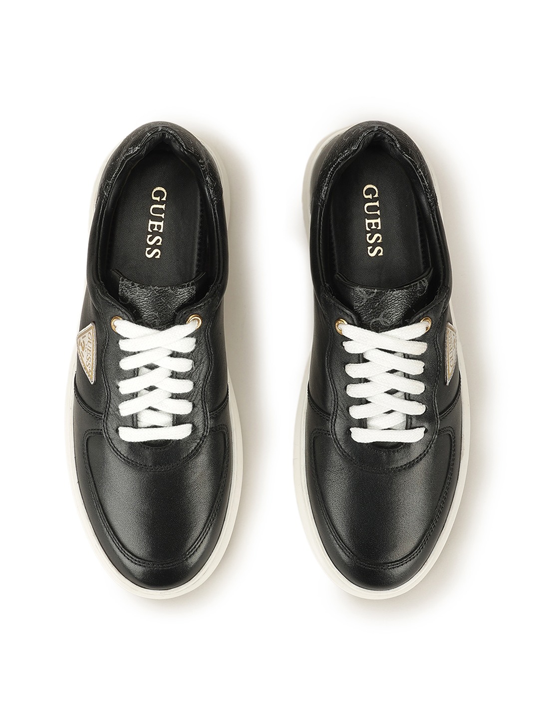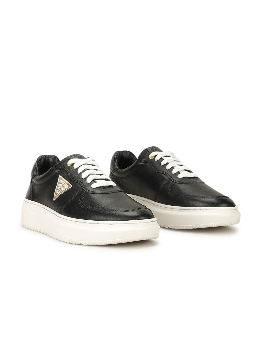 • Step into style and comfort with our sleek black leather sneakers designed exclusively for women. Crafted from 100% premium leather, these sneakers offer a luxurious feel and long-lasting durability. The solid pattern adds a touch of elegance, making them perfect for any occasion. Whether you're heading to work or out for a casual day, these sneakers provide the perfect blend of fashion and function. The cushioned insole ensures all-day comfort, while the sturdy sole offers excellent traction. Elevate your footwear collection with these versatile sneakers.