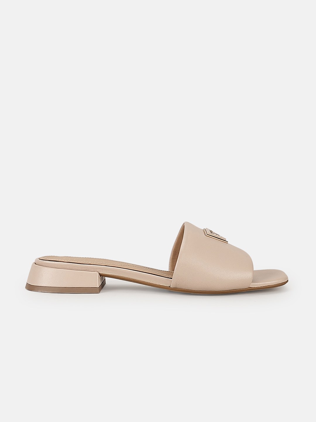 Beige Solid Slip-On Open Toe Flat Sandals