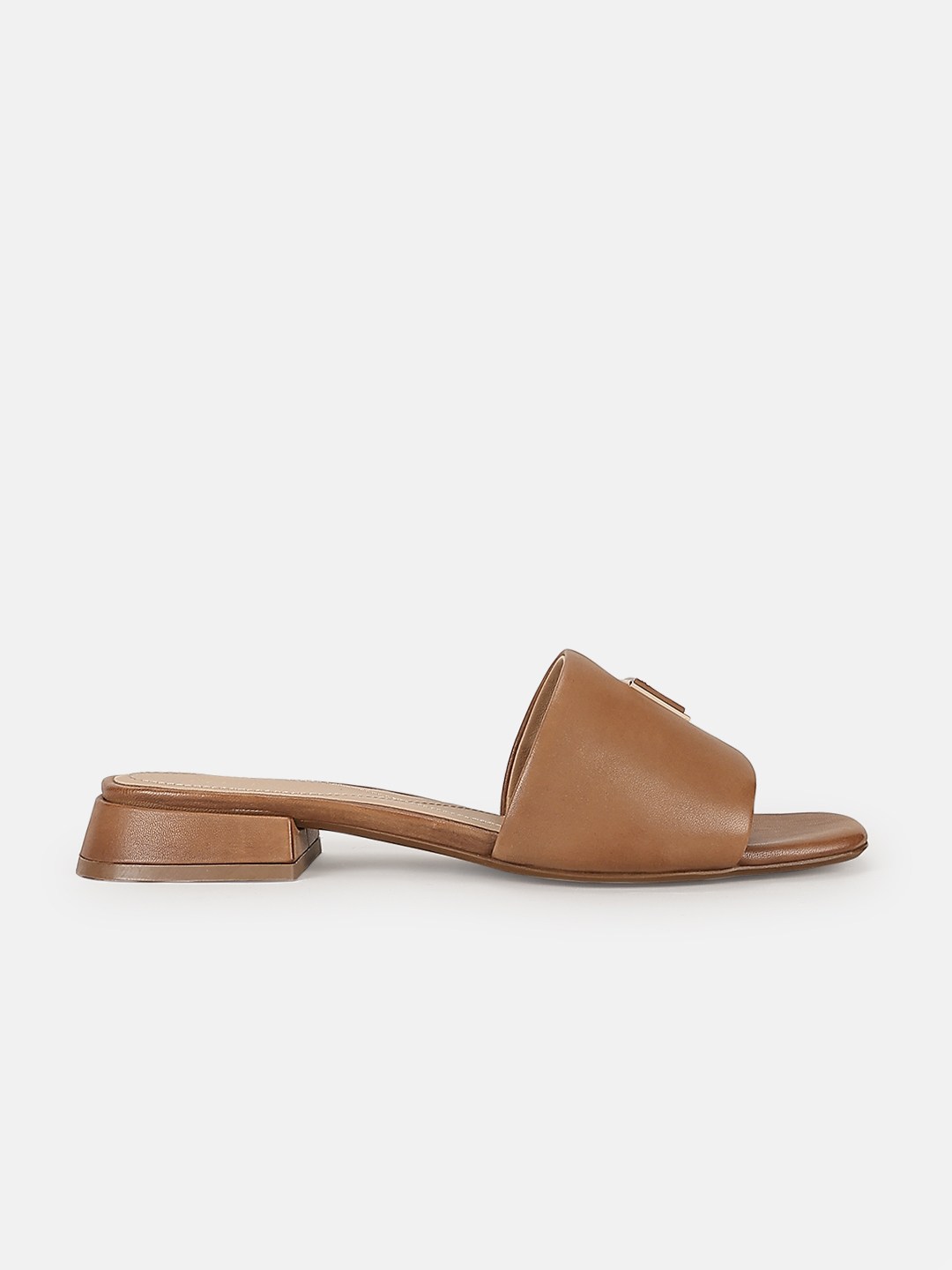 Tan Solid Slip-On Open Toe Flat Sandals